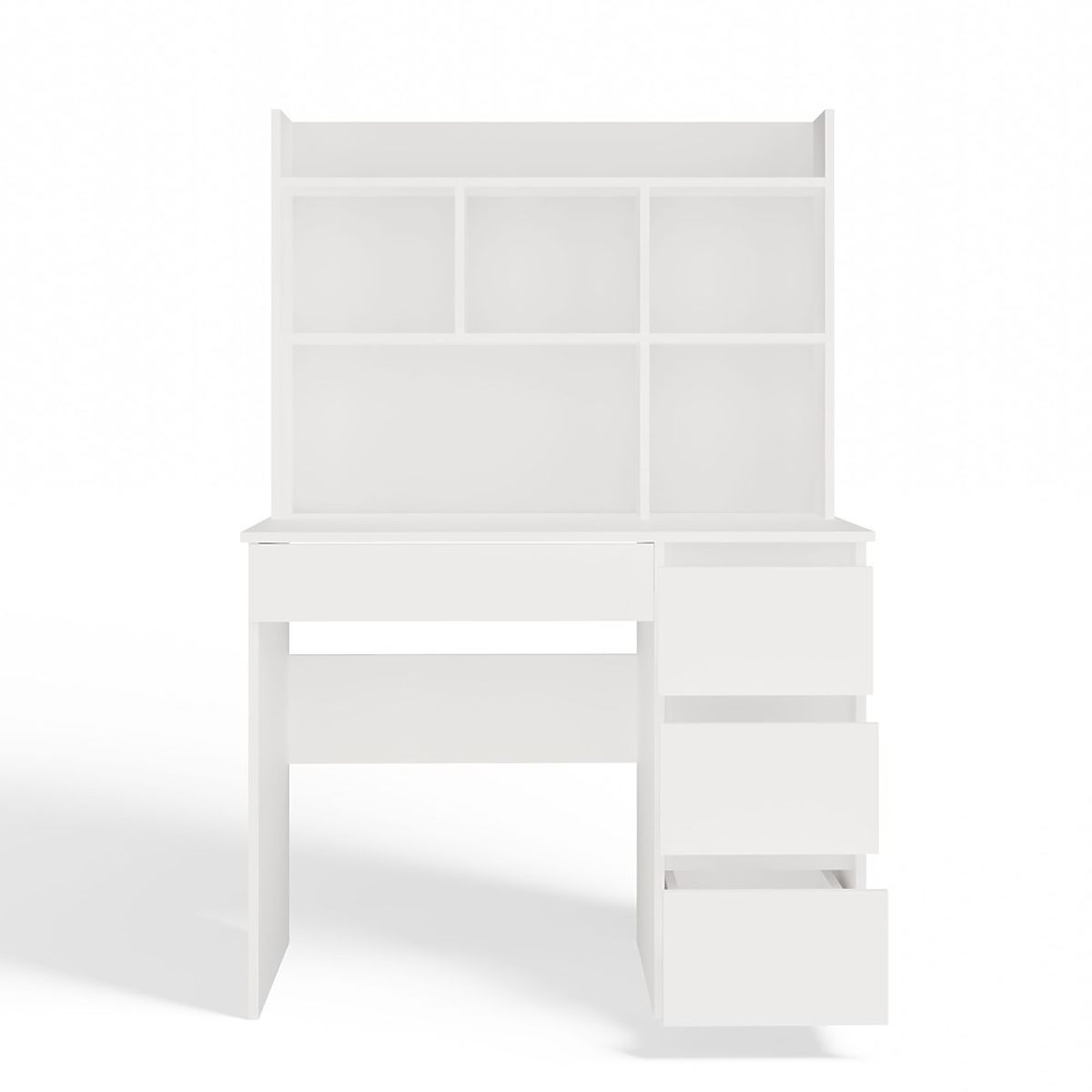 Biurko MIJAS Prawe z Nadstawką Biel Mat 4 Szuflady 4 Półki Do Biura Pokoju