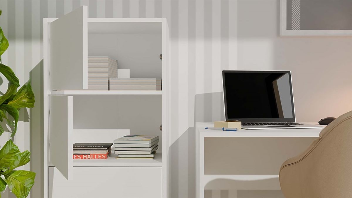 Díky prostorným policím skrytým za hladkými dveřmi poskytuje komoda spoustu úložného prostoru a usnadňuje udržování pořádku v každém prostoru.