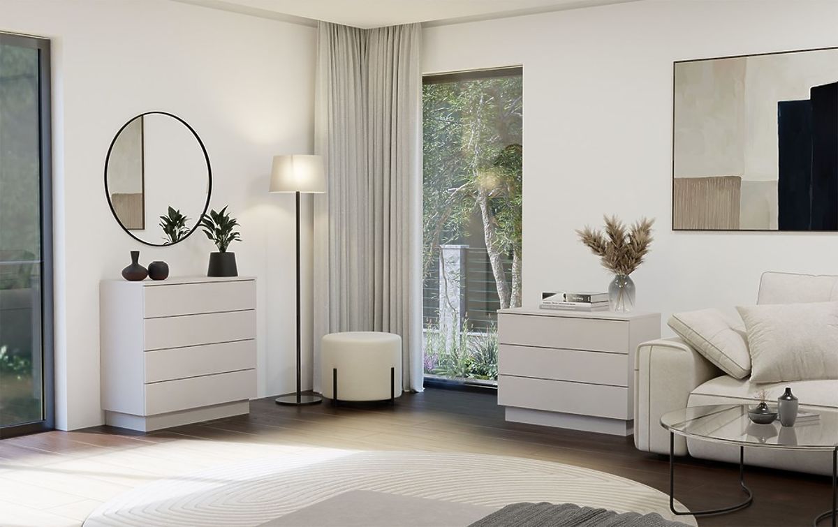 Lukafurniture.cz » Nábytek / Komody / Komoda AMBER 3S Skříňka 3 Zásuvky Do Ložnice Obývacího Pokoje KAŠMÍR Béžová