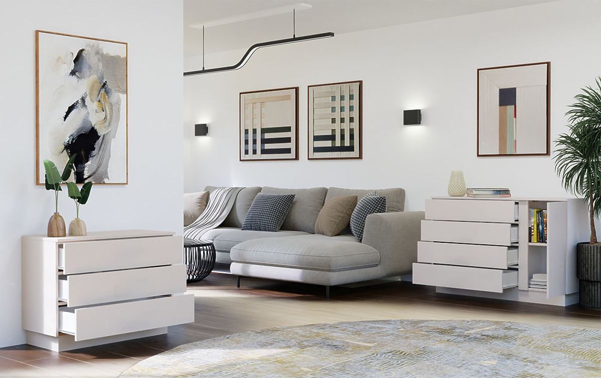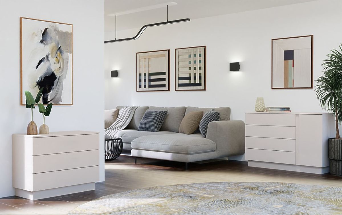 Moderní komoda AMBER 3S s 3 zásuvkami v kašmírové béžové. .. více