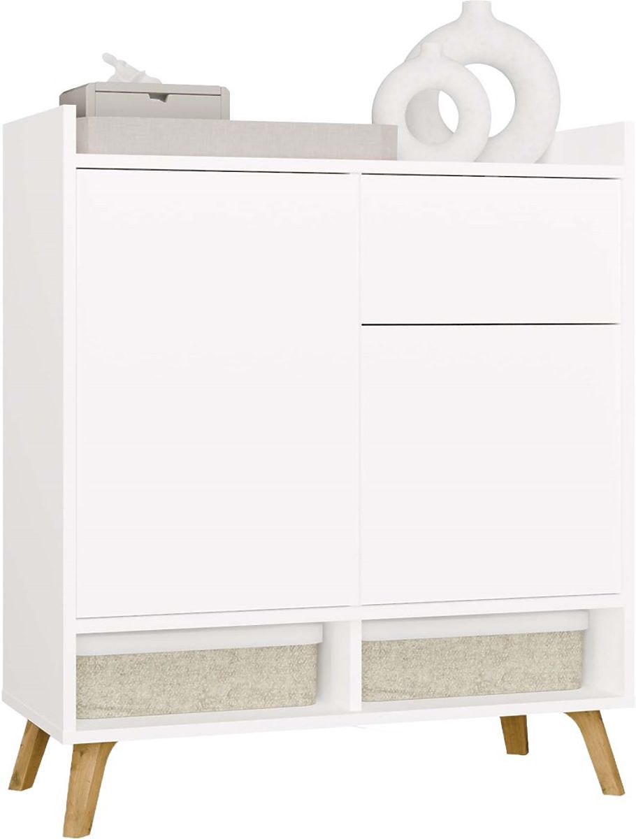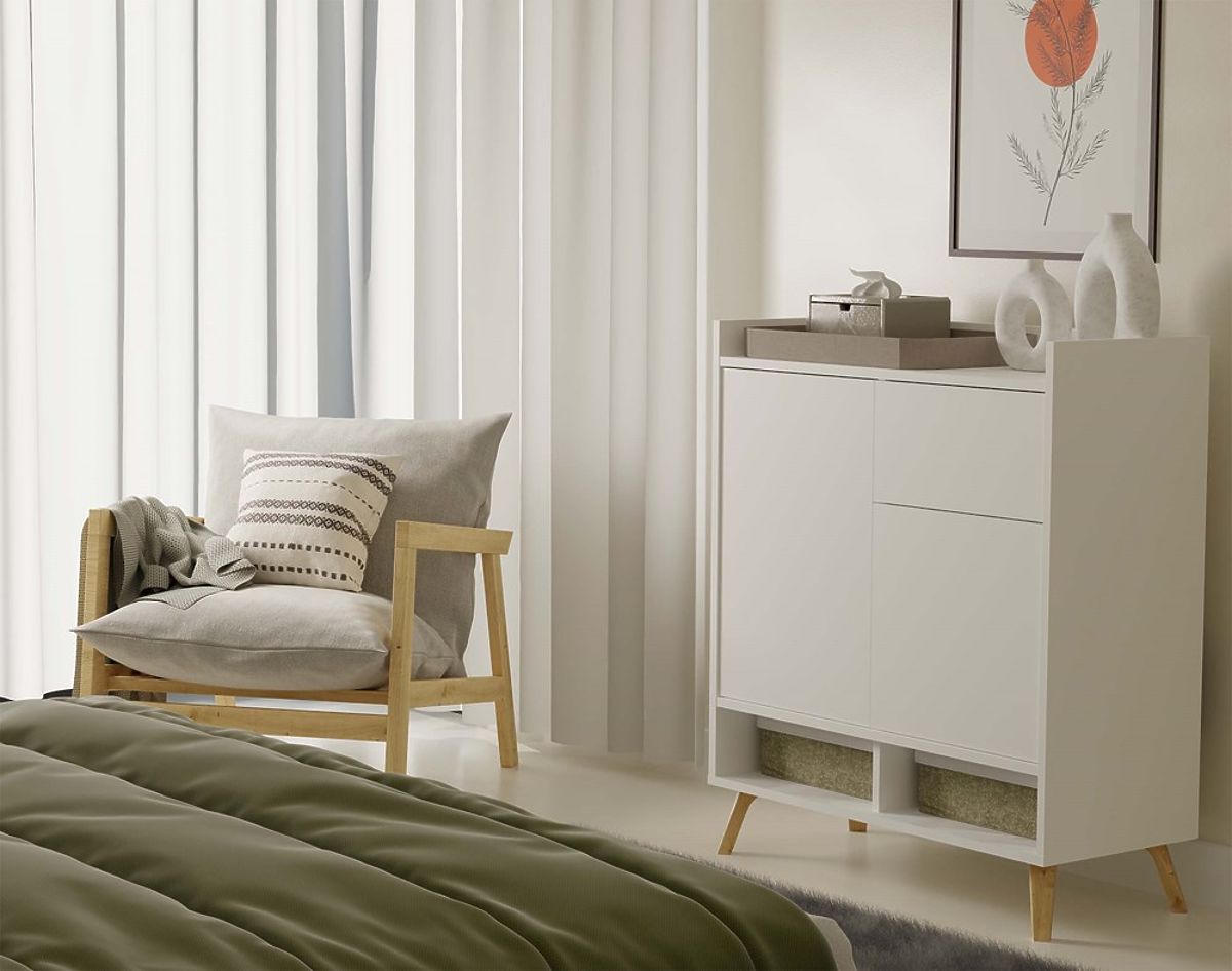 Komoda COLIN Skříňka 2 Dveře 1 Zásuvka S Nohami BÍLÁ
