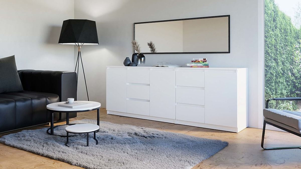 Moderní komoda COSTA je tvořena dvěma samostatnými komodami 1D3S o šířce 80 cm a 2D3S o šířce 120 cm, které jsou spojeny do funkční sestavy. Costa je praktický a prostorný nábytek, který zařídí interiér vaší ložnice, obývacího pokoje nebo dětského pokoje.