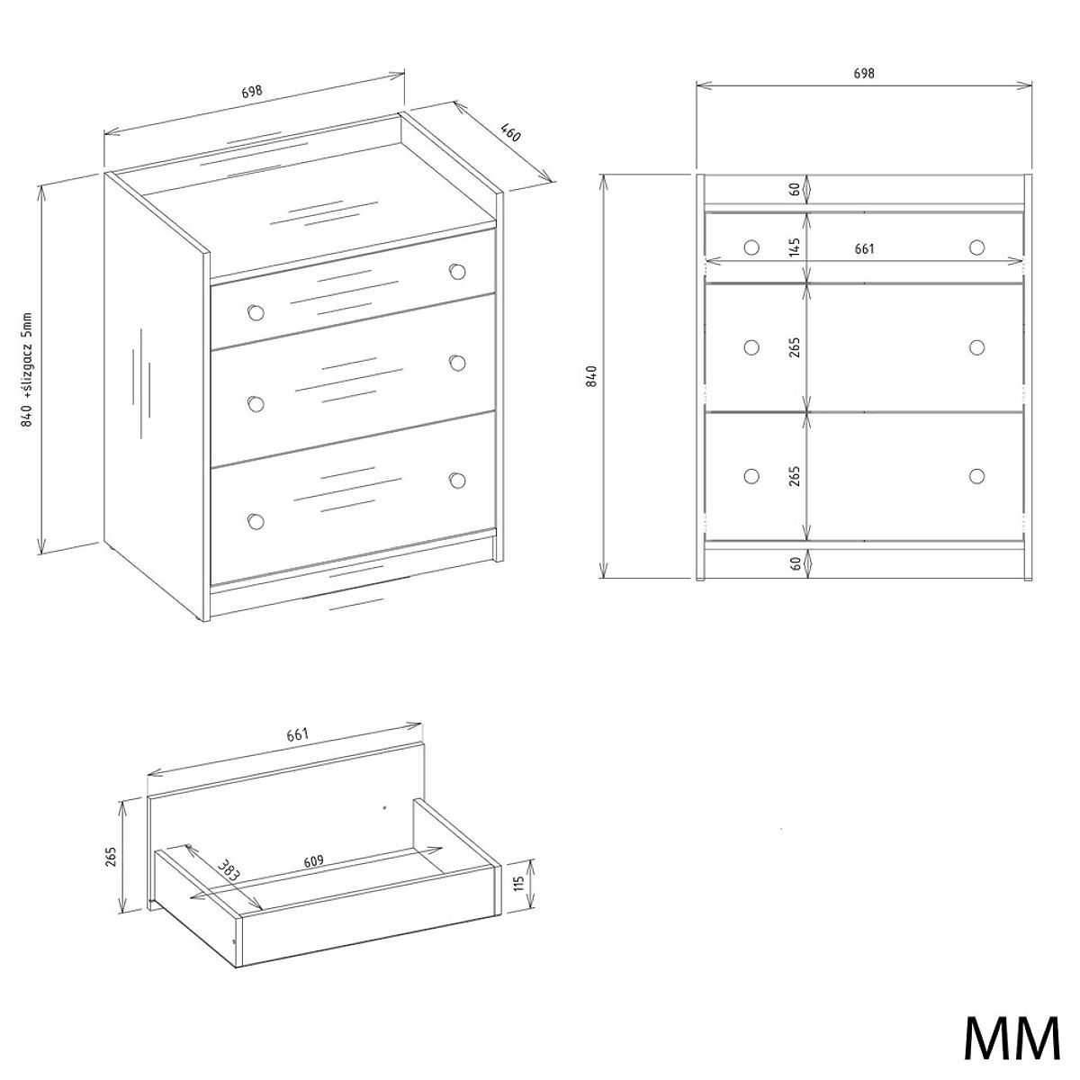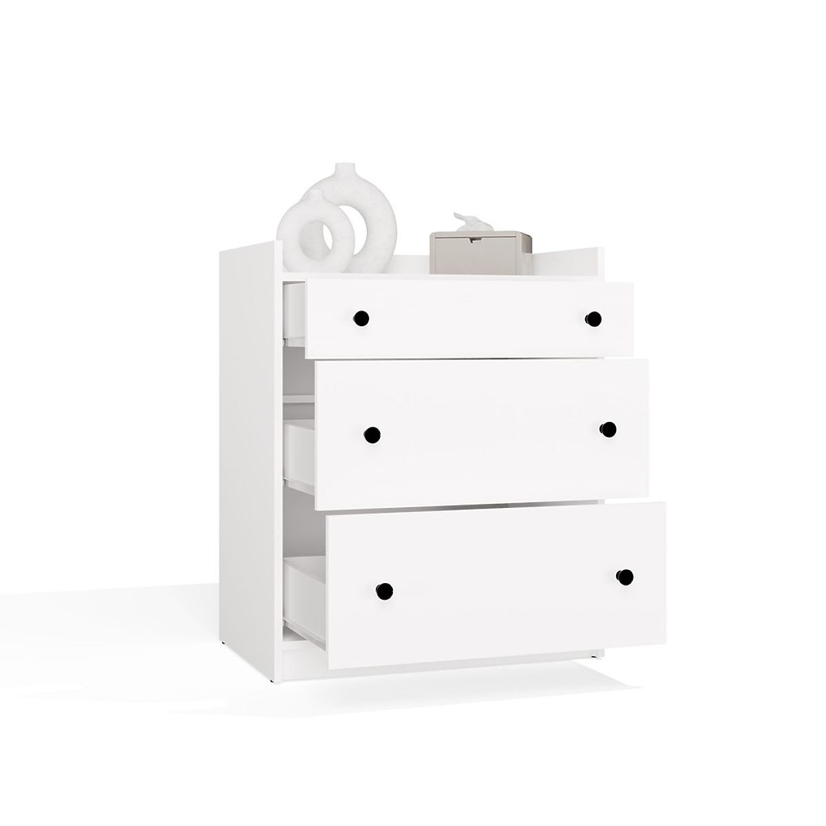 Díky 3 prostorným zásuvkám s pohodlnými úchyty poskytuje dostatek prostoru pro uložení oblečení, doplňků, textilií nebo dětských potřeb.