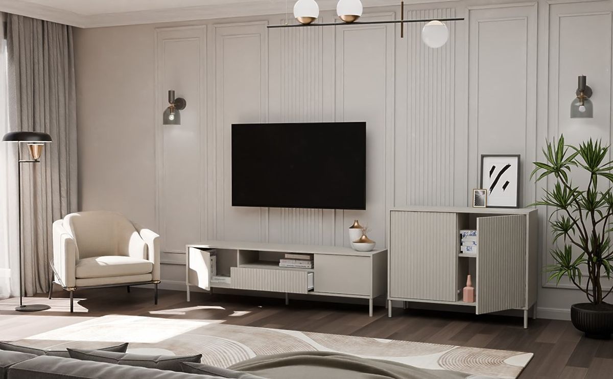 Kombinace módního odstínu Kašmír (elegantní béžová) s moderním designem vytváří nábytek, který dodá vašemu interiéru jemnou eleganci. Jeho neutrální barevnost umožňuje snadné začlenění do různých stylů, od loftových po skandinávské.
