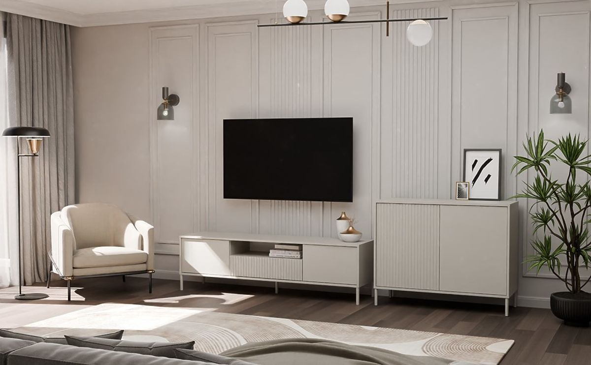 Kombinace módního odstínu Kašmír (elegantní béžová) s moderním designem vytváří nábytek, který dodá vašemu interiéru jemnou eleganci. Jeho neutrální barevnost umožňuje snadné začlenění do různých stylů, od loftových po skandinávské.