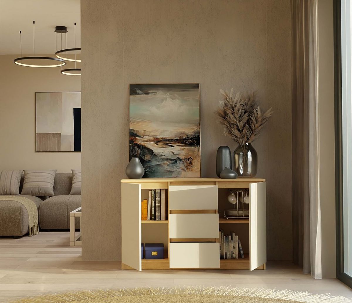 Stylová komoda 2D3S v barvách Kašmír a Dub Artisan. .. více