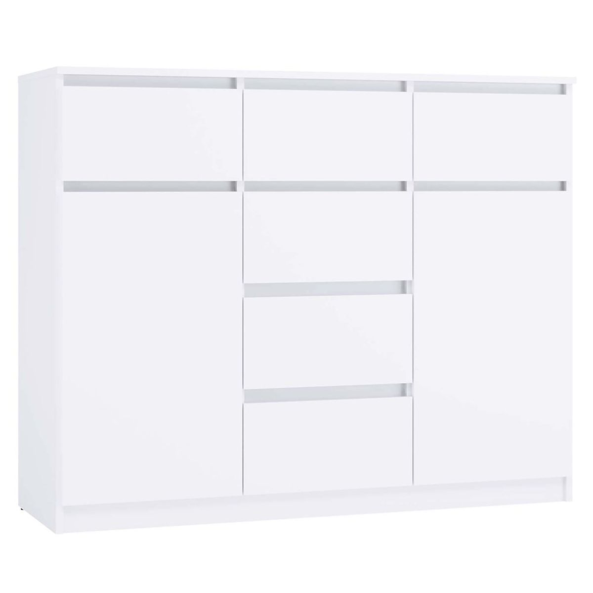 Moderní komoda s 2 dveřmi a 6 zásuvkami v bílé barvě. .. více