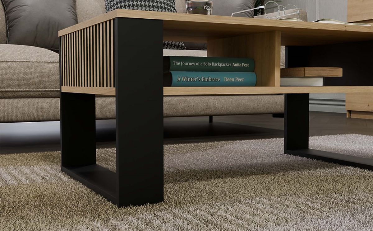 Lukafurniture.cz » Stoly a stolky / Konferenční stolky / Konferenční stolek Modern 2P SLIM DUB ARTISAN ČERNÝ