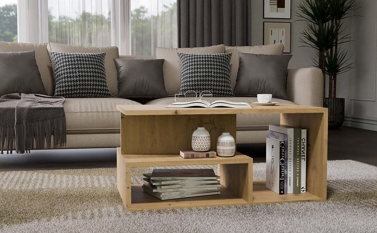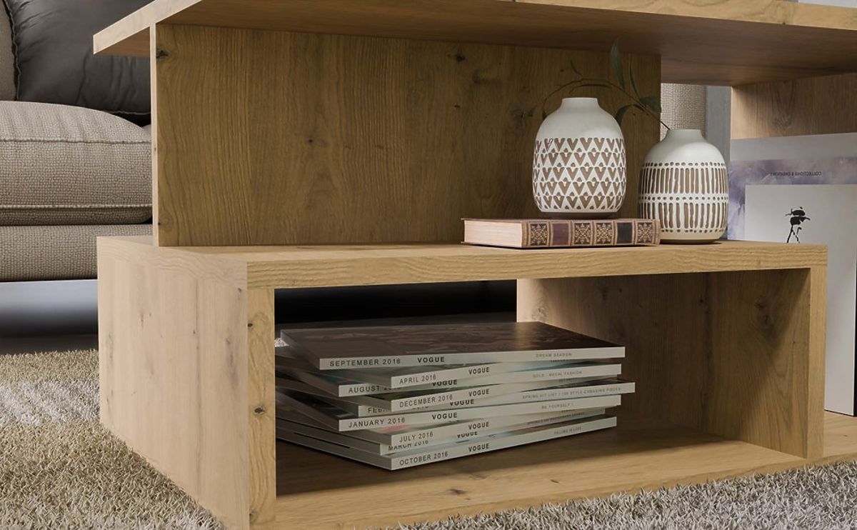 Konferenční stolek z laminované desky s přídavnou policí. .. více