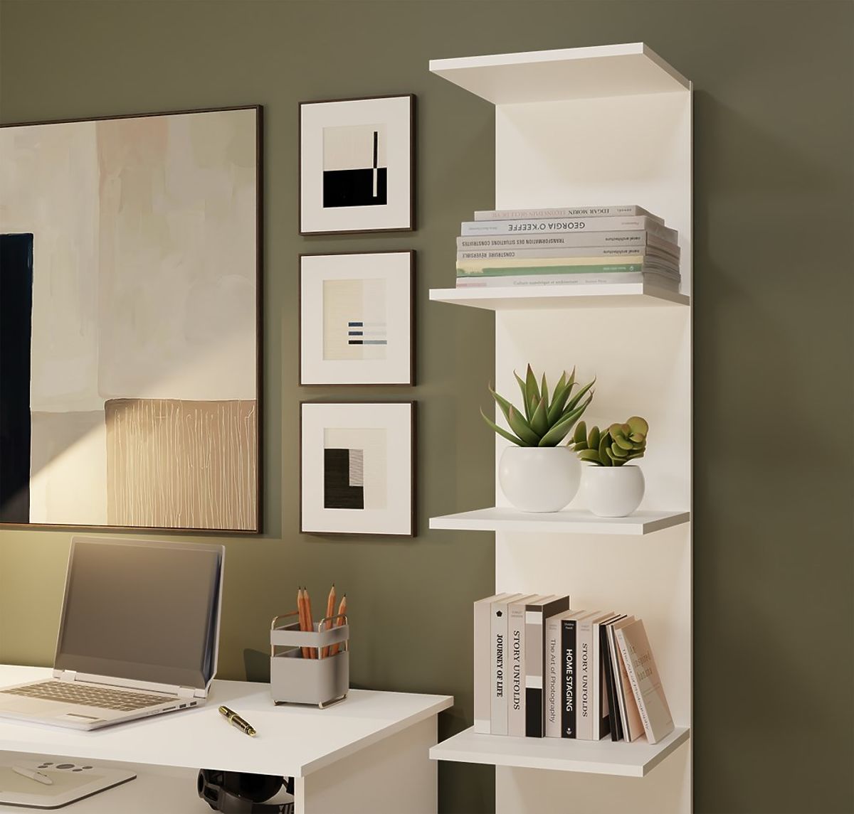 Regál 6P je minimalistický a funkční nábytek, který se skvěle hodí do obývacího pokoje, kanceláře, studentského pokoje nebo domácí knihovny. Díky lehké, moderní formě a neutrální bílé barvě jej snadno přizpůsobíte mnoha interiérovým aranžmá.