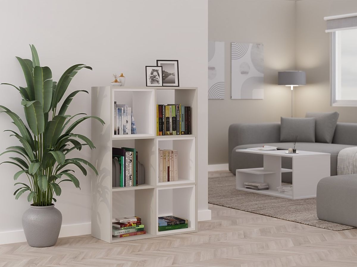 Regál MALAX 2X3 je kombinací moderního designu a funkčnosti, který se dokonale hodí do různých interiérů. Jeho jednoduchost a elegance z něj činí nejen praktický, ale i estetický prvek vybavení.