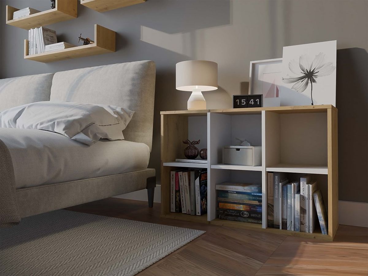 Regál MALAX MINI 2X3 je elegantním a funkčním řešením pro ukládání knih, hraček, dokumentů a dekorací. Díky otevřené konstrukci umožňuje snadný přístup k uloženým předmětům a jeho moderní styl se dokonale hodí do interiéru kanceláře, obývacího pokoje nebo studentského pokoje.