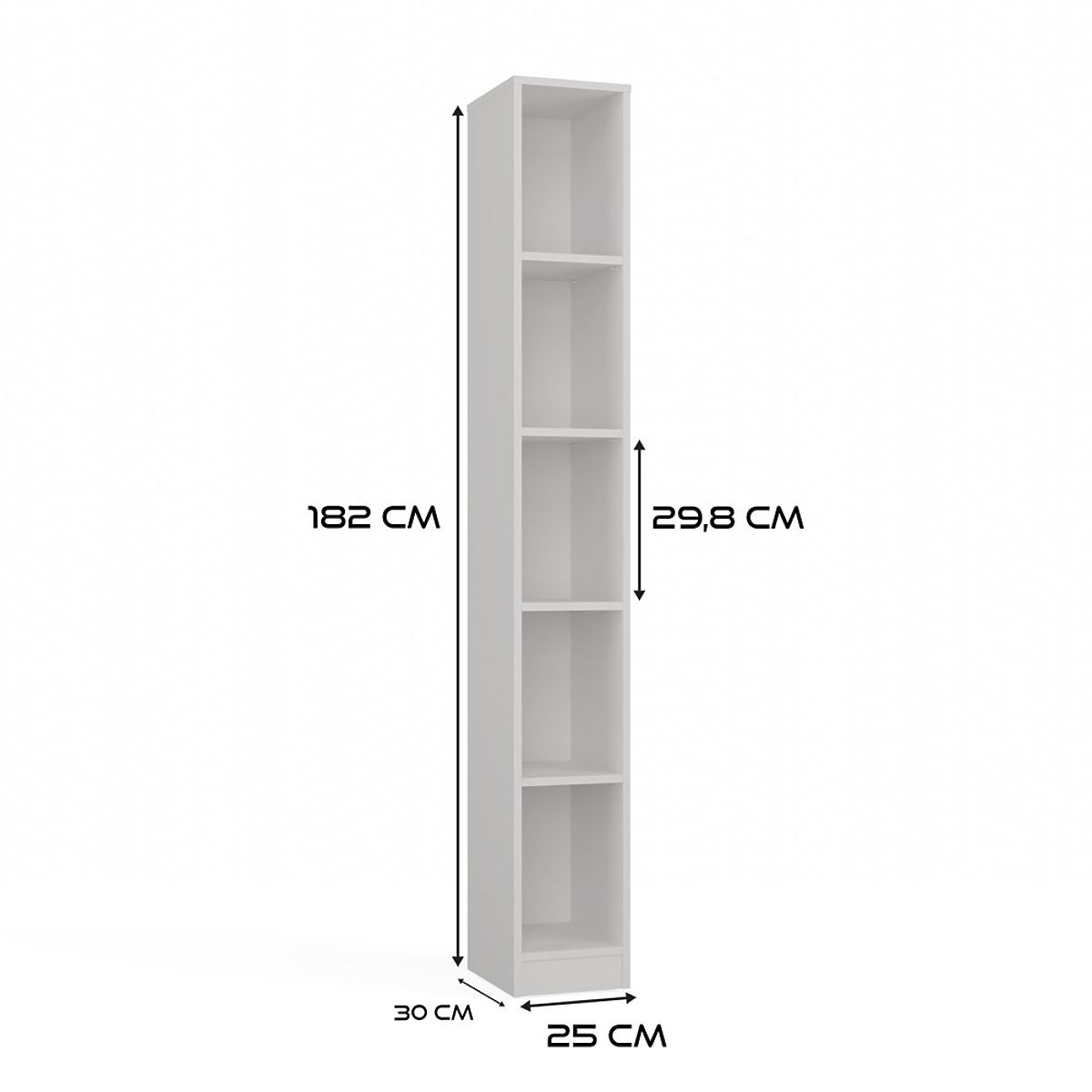 Úzký bílý regál na knihy a šanony, šířka 25 cm, výška 182 cm. .. více