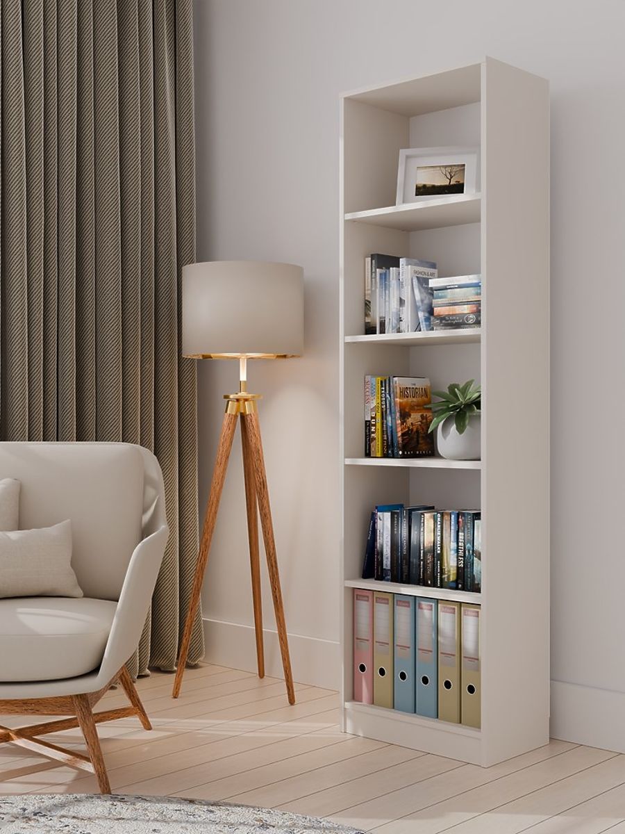 Elegancki i funkcjonalny regał w kolorze kaszmir to perfekcyjne rozwiązanie do przechowywania książek, segregatorów, zabawek oraz materiałów biurowych.