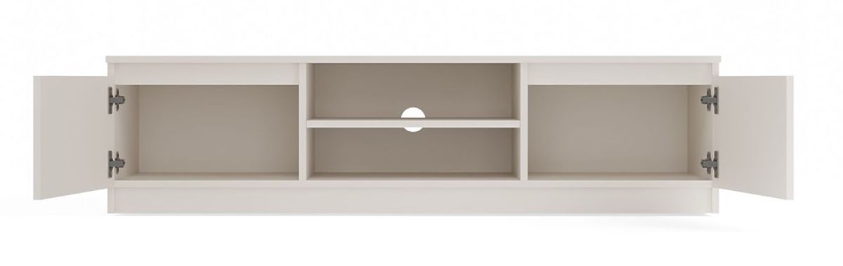 Otevřená police umožňuje pohodlné umístění RTV zařízení a otvor v zadní části usnadňuje diskrétní montáž kabeláže.