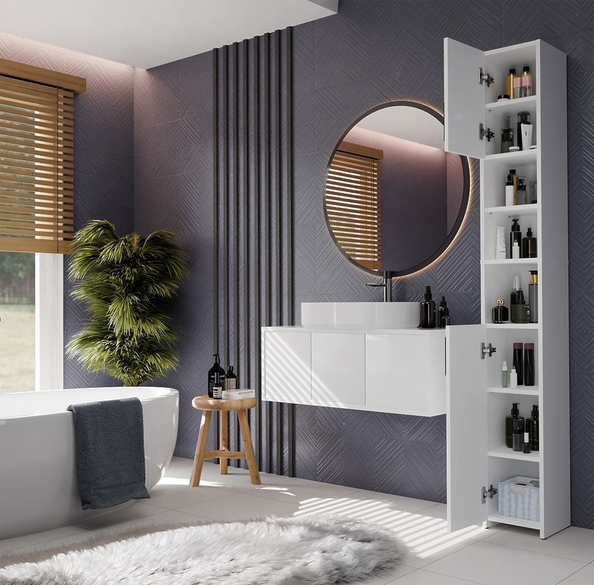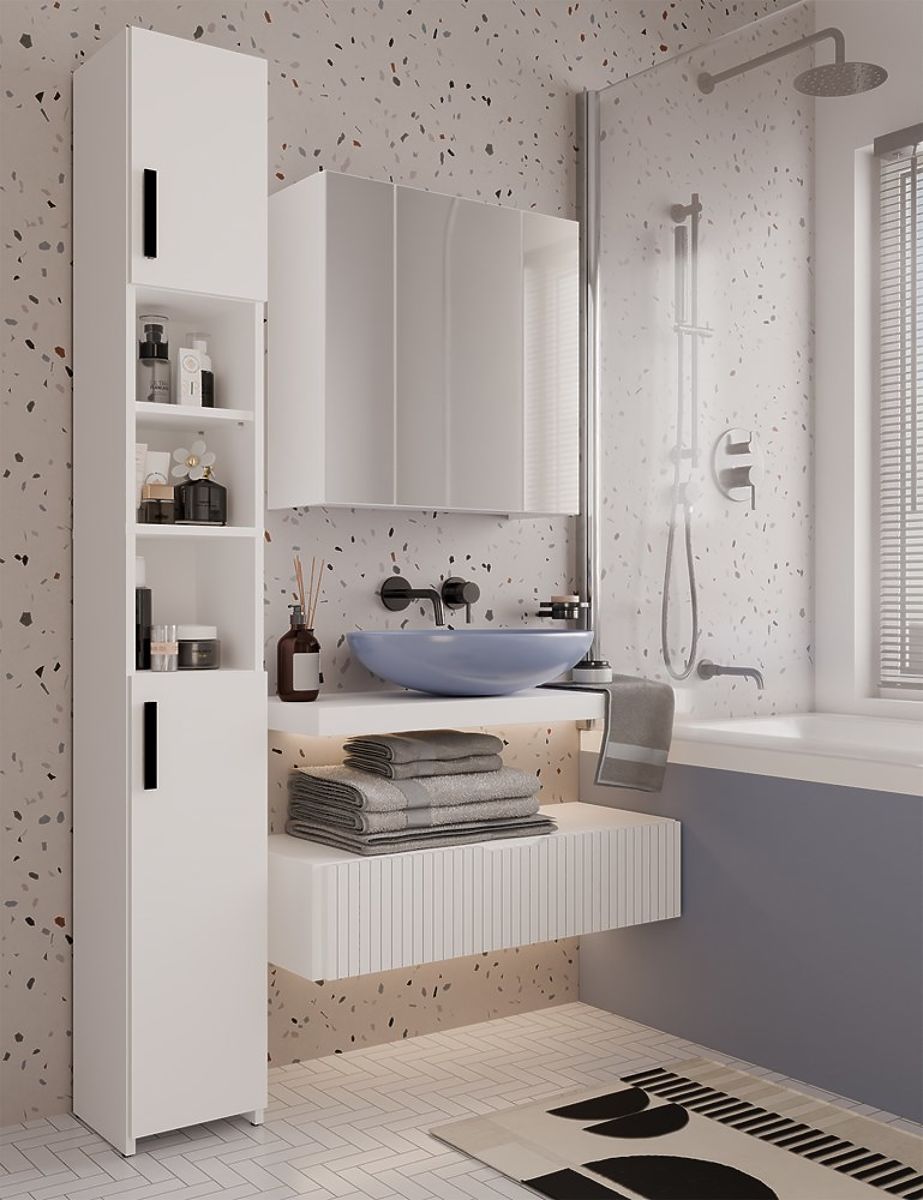Minimalistická a funkční koupelnová skříňka ALVO 2D je skvělým řešením pro ukládání kosmetiky, ručníků a čisticích prostředků v každé koupelně. Její kompaktní forma a neutrální barevnost zajišťují, že se hodí jak do moderních, tak do klasických interiérů.