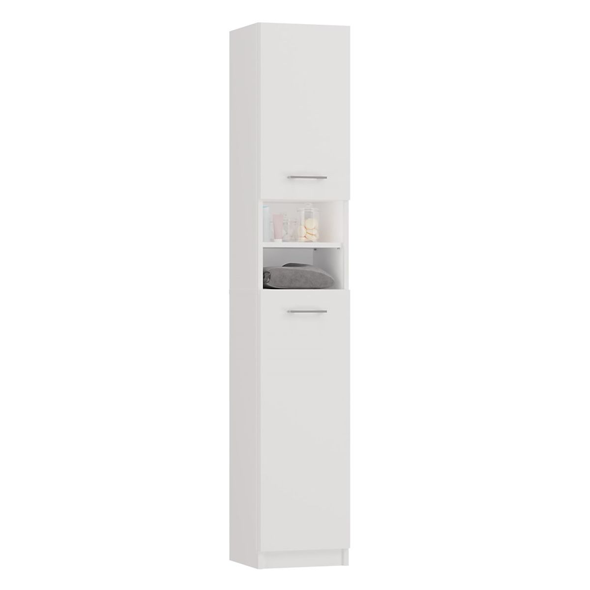 Praktický koupelnový regál s matným bílým povrchem. .. více