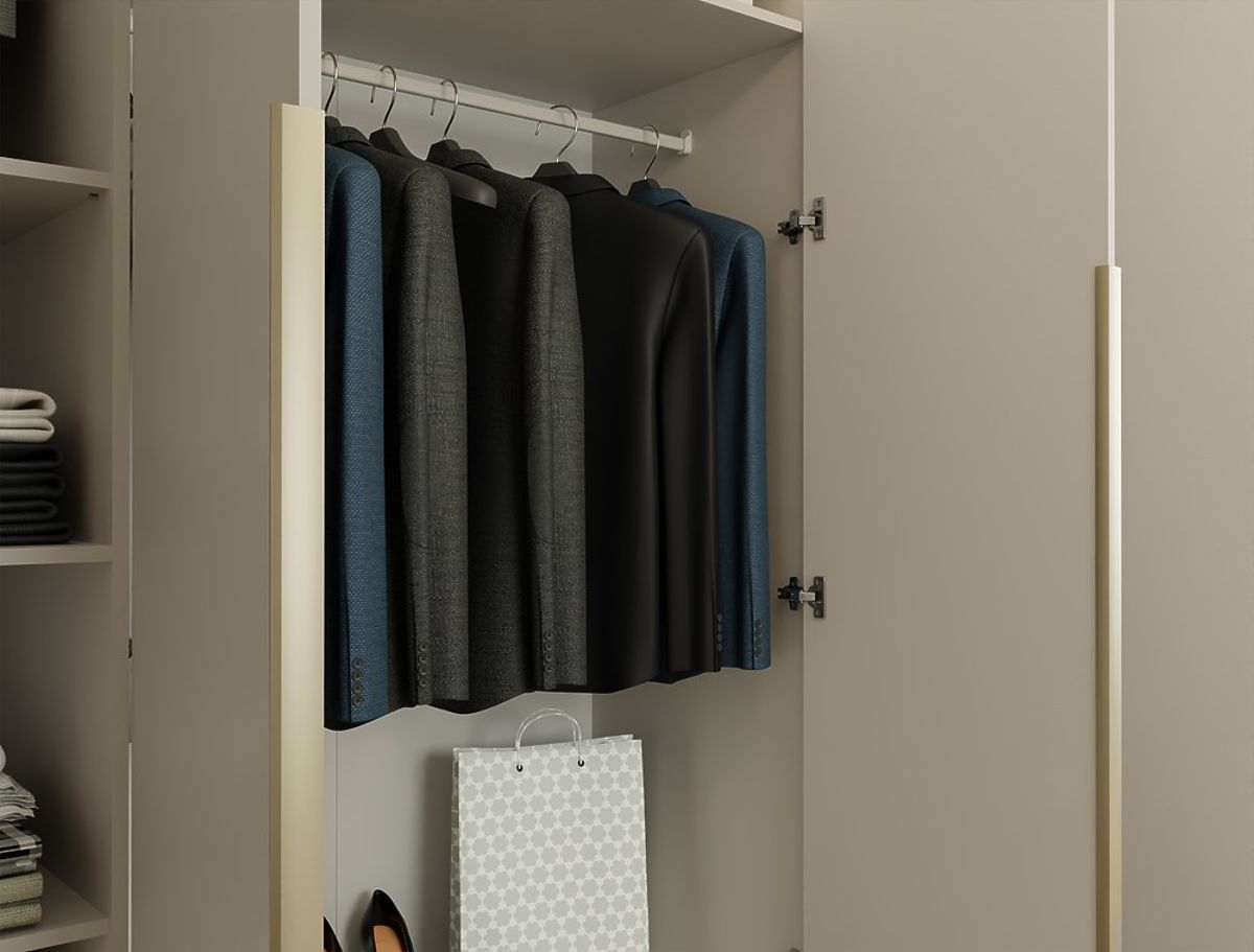 Model SENSO 4D byl navržen s ohledem na maximální pohodlí užívání. Uvnitř se nachází až 11 prostorných polic a široká část s tyčí na ramínka – ideální pro bundy, kabáty, obleky nebo šaty. Skříň pojme vše, co potřebujete, ať už se nachází v ložnici, šatně nebo předsíni.