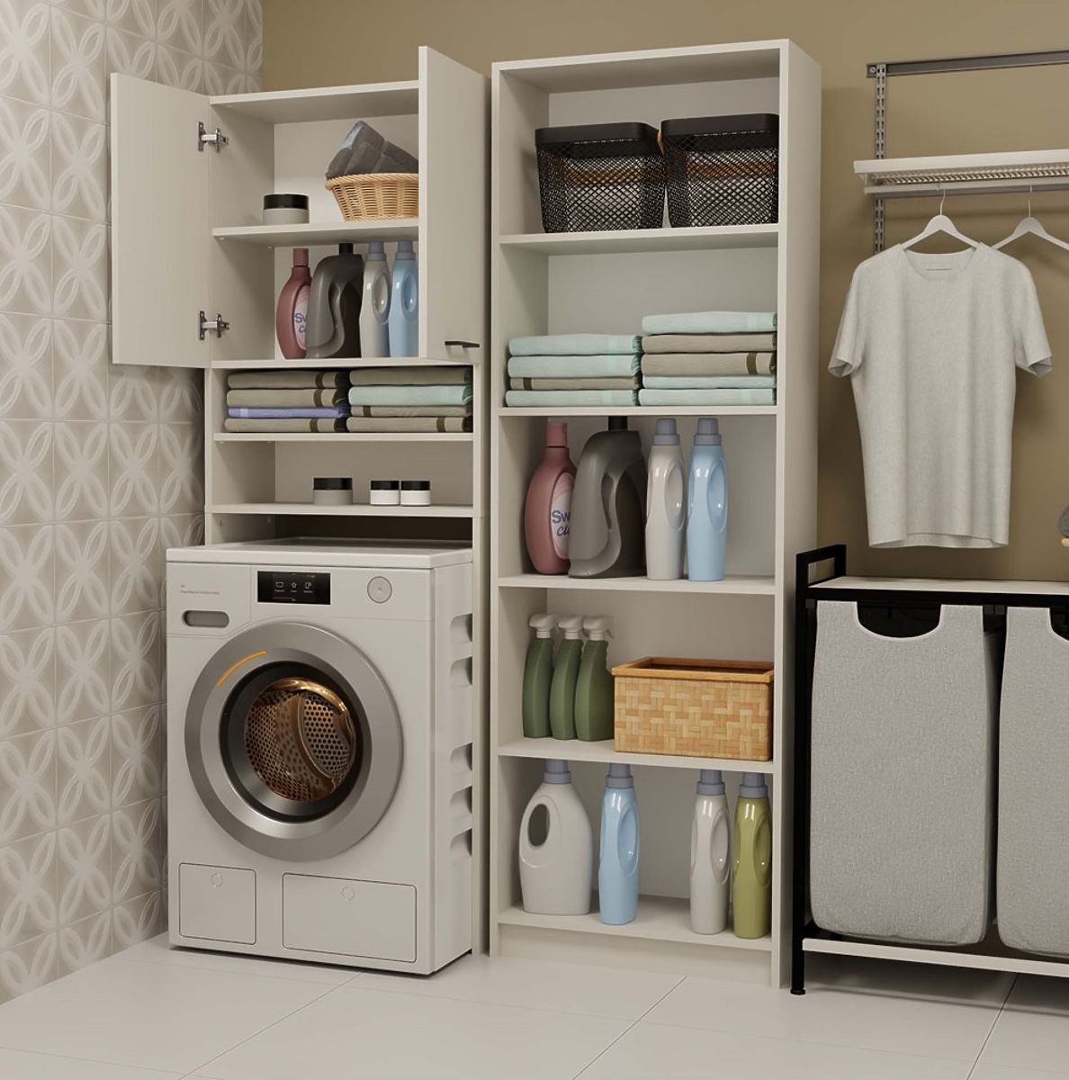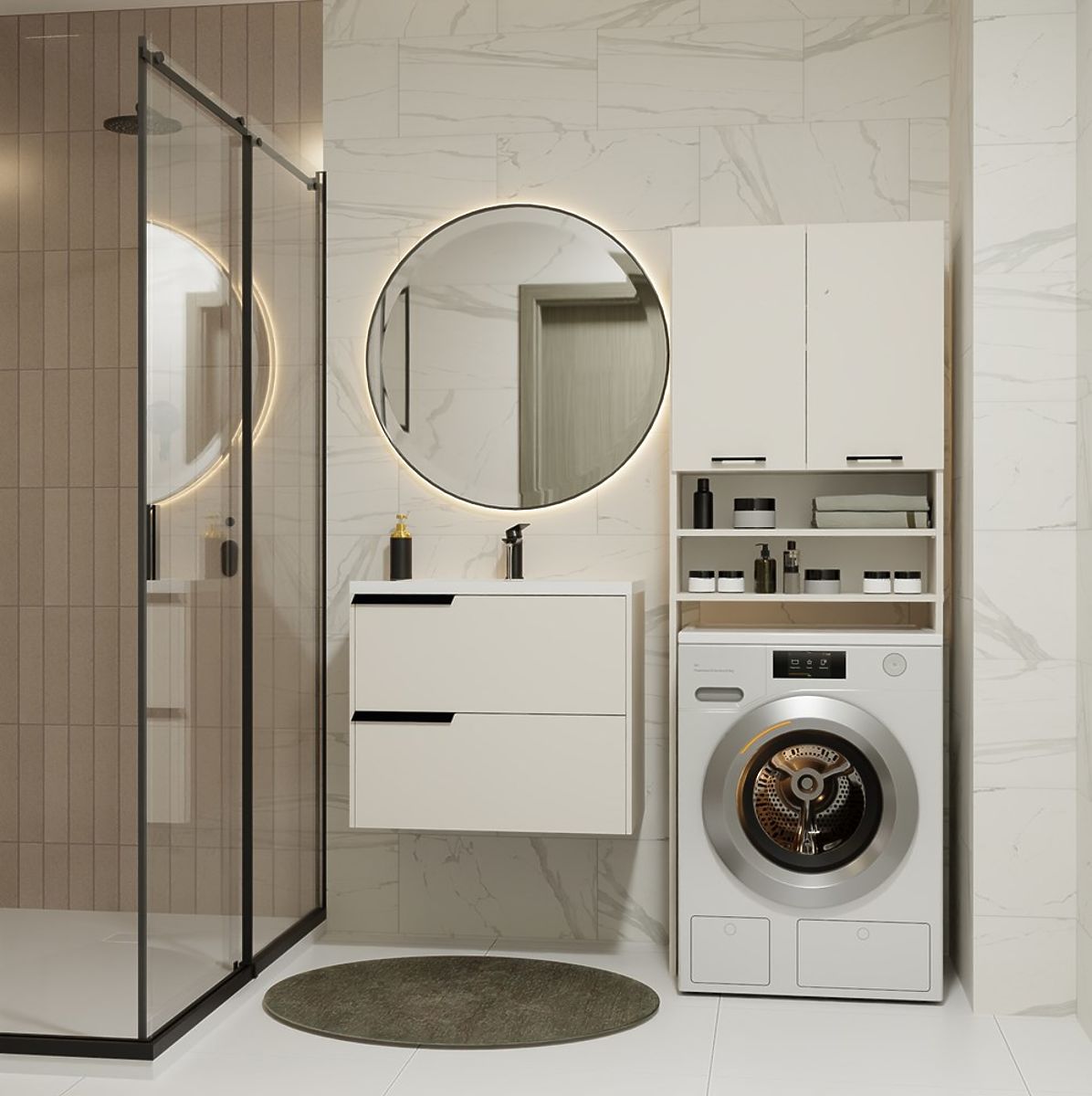 Koupelnová skříňka Pola DK je funkční a moderní regál, který umožňuje maximální využití prostoru nad pračkou. Je to ideální řešení pro ty, kteří chtějí uspořádat koupelnu a získat další úložný prostor bez zabírání cenné podlahové plochy.