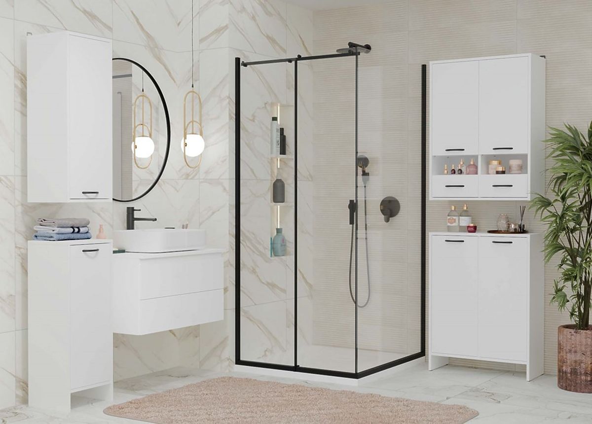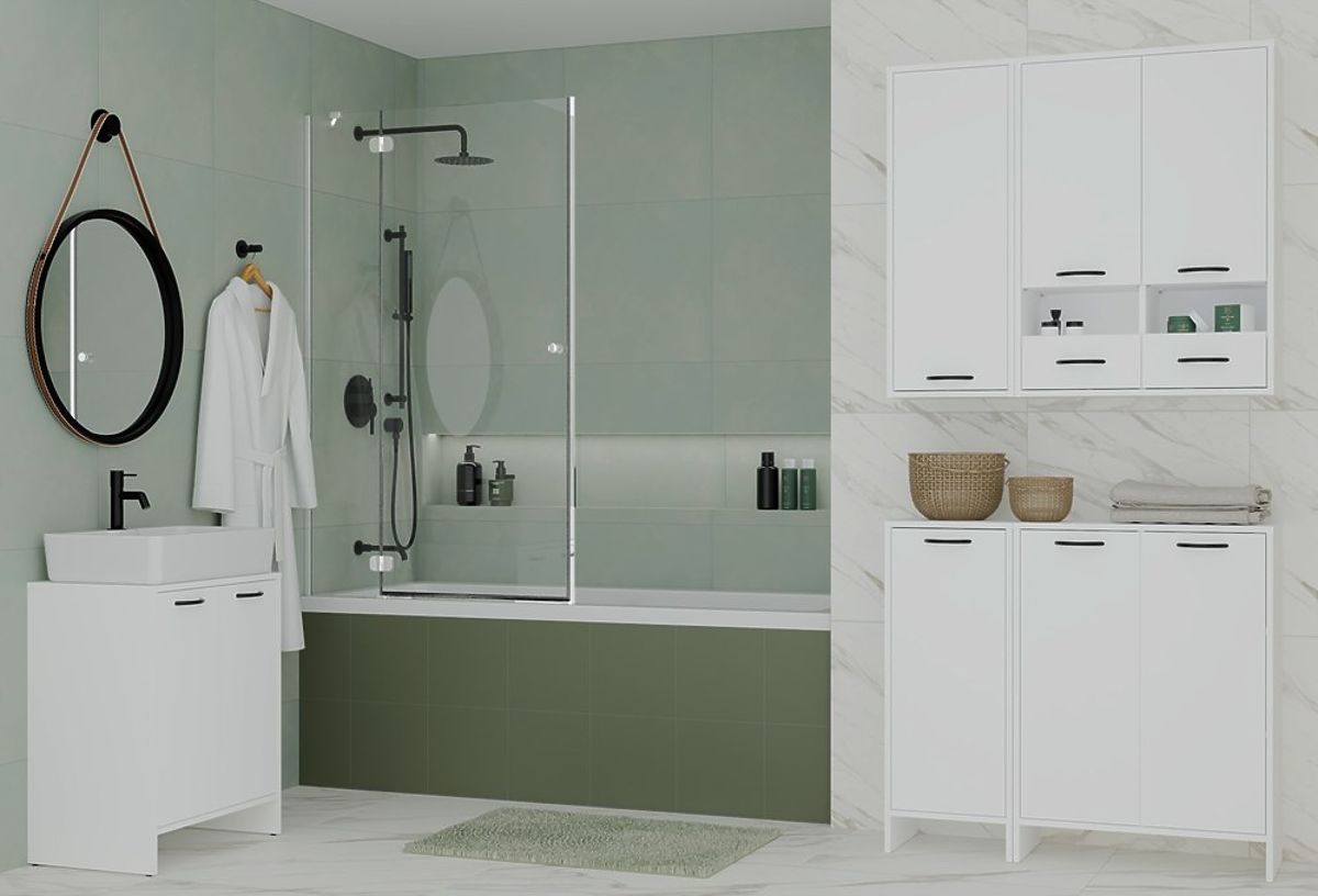 Lukafurniture.cz » Koupelna a WC / Koupelnové skříňky / Koupelnová skříňka NINA 1K BÍLÁ 1 Koš na prádlo Regál Sloupek do koupelny