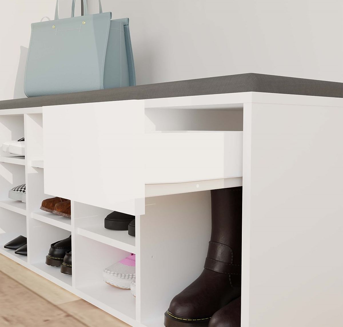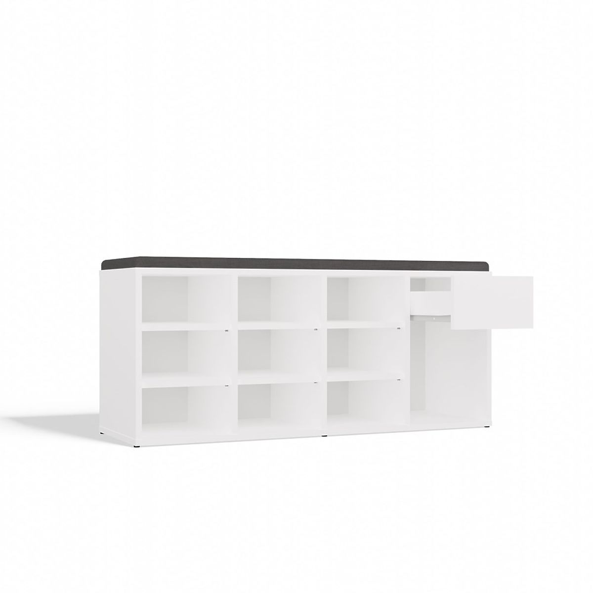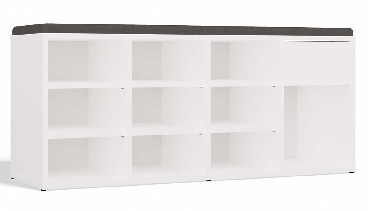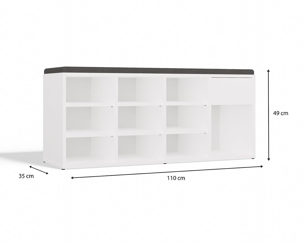 Botníková skříň TALLIN s čalouněným sedátkem a 9 přihrádkami. .. více