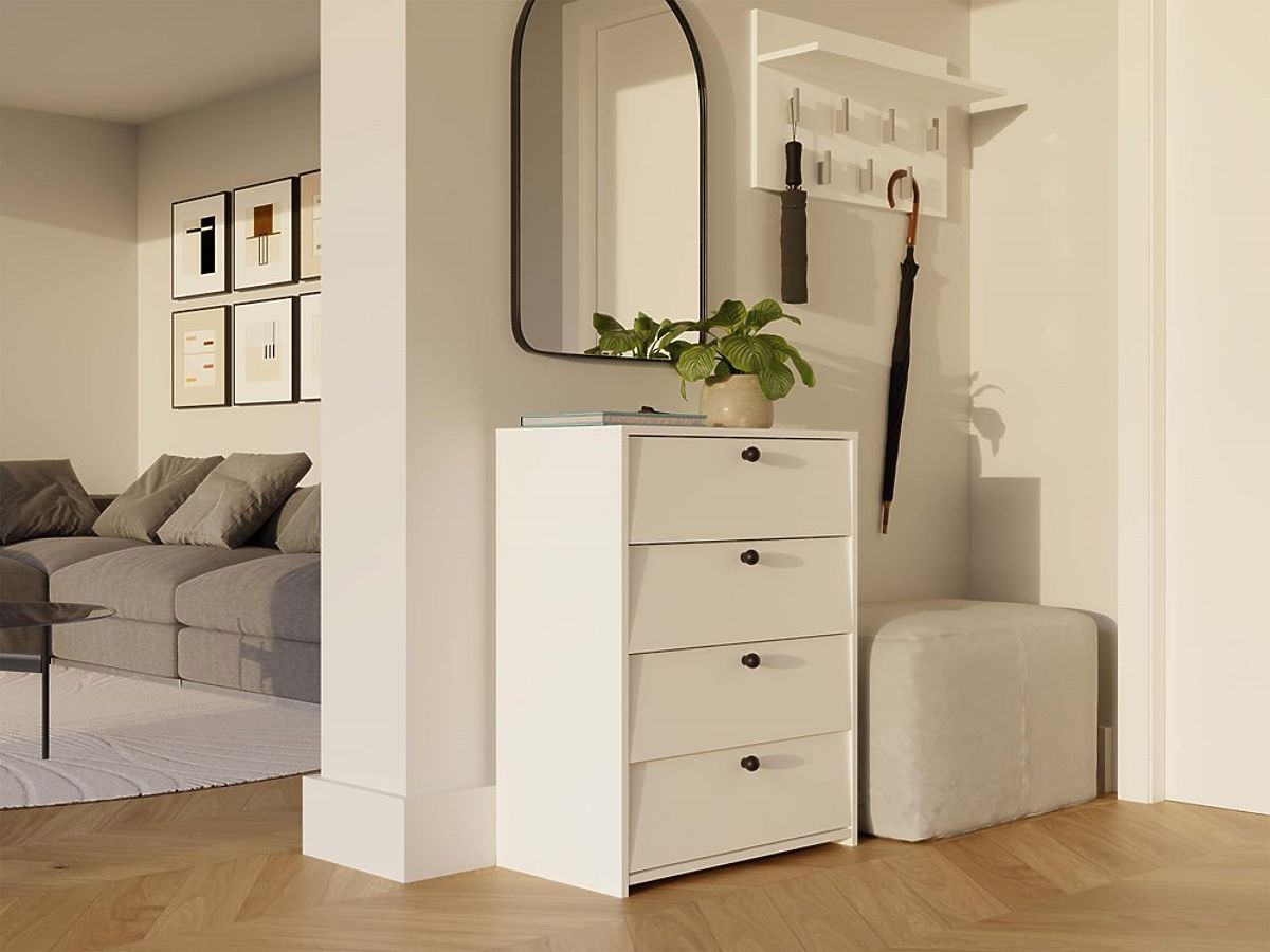 Funkční botník LOKA je ideálním řešením pro předsíň, chodbu nebo šatnu. Díky čtyřem samostatným výklopným dveřím s pohodlnými úchyty pojme mnoho párů obuvi a zároveň udržuje pořádek a estetiku místnosti. Je to praktický a kompaktní nábytek, který umožňuje maximálně využít dostupný prostor - i v malých interiérech.
