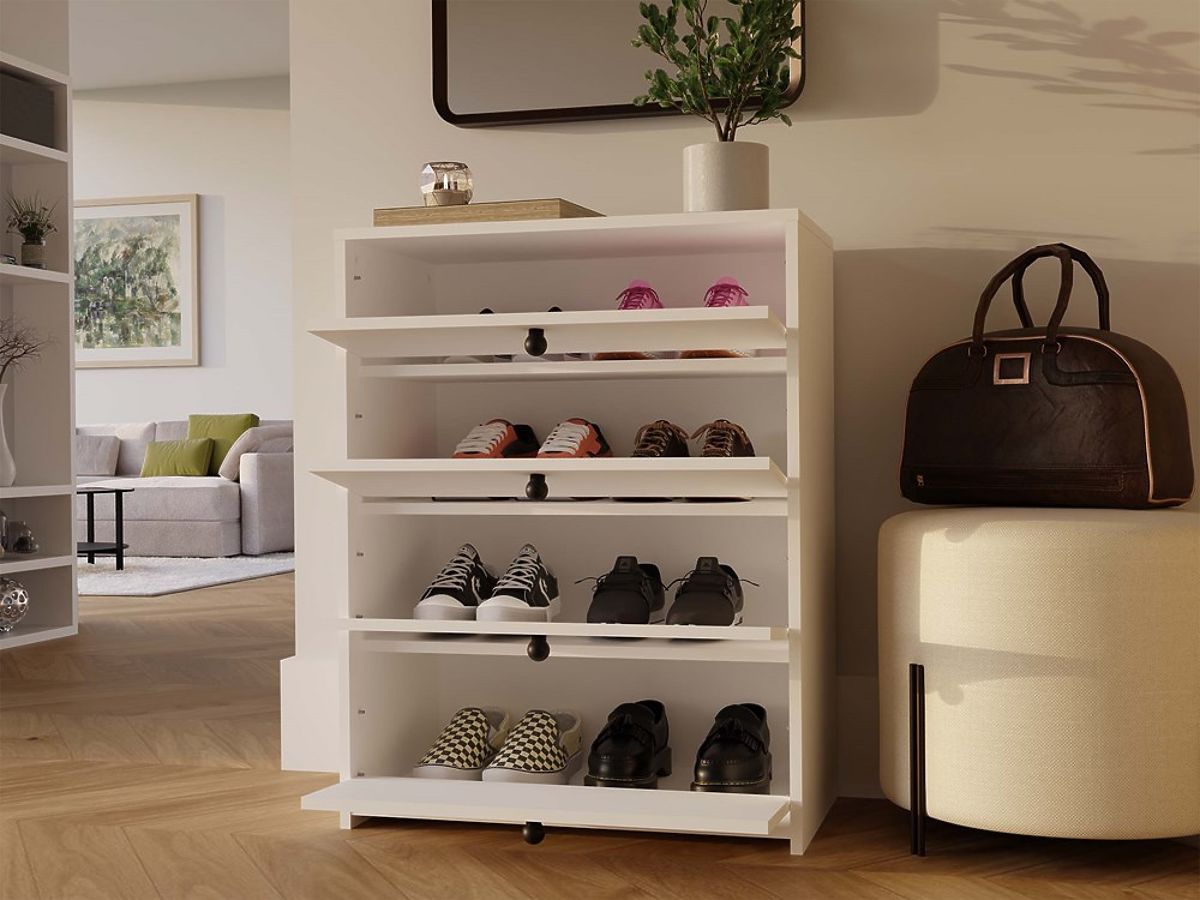 Minimalistická forma a univerzální bílá barva zajišťují, že botník snadno zapadne do různých aranžmá - od klasických po moderní. Může sloužit jako samostatný prvek nebo být součástí většího nábytkového setu do předsíně.