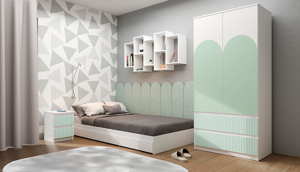 Série ARTESO s tištěnými, vertikálními vzory je ideálním nábytkem do dětského pokoje nebo pokoje pro mládež.