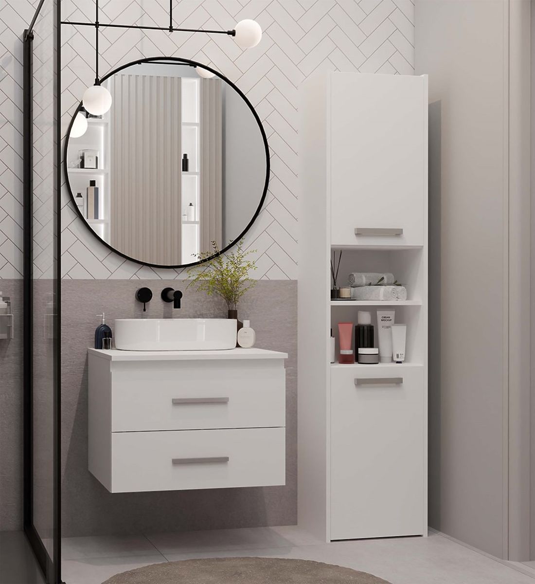 NEL 60 je kompaktní a praktická koupelnová skříňka, která se skvěle hodí do moderních interiérů, jak větších, tak menších.