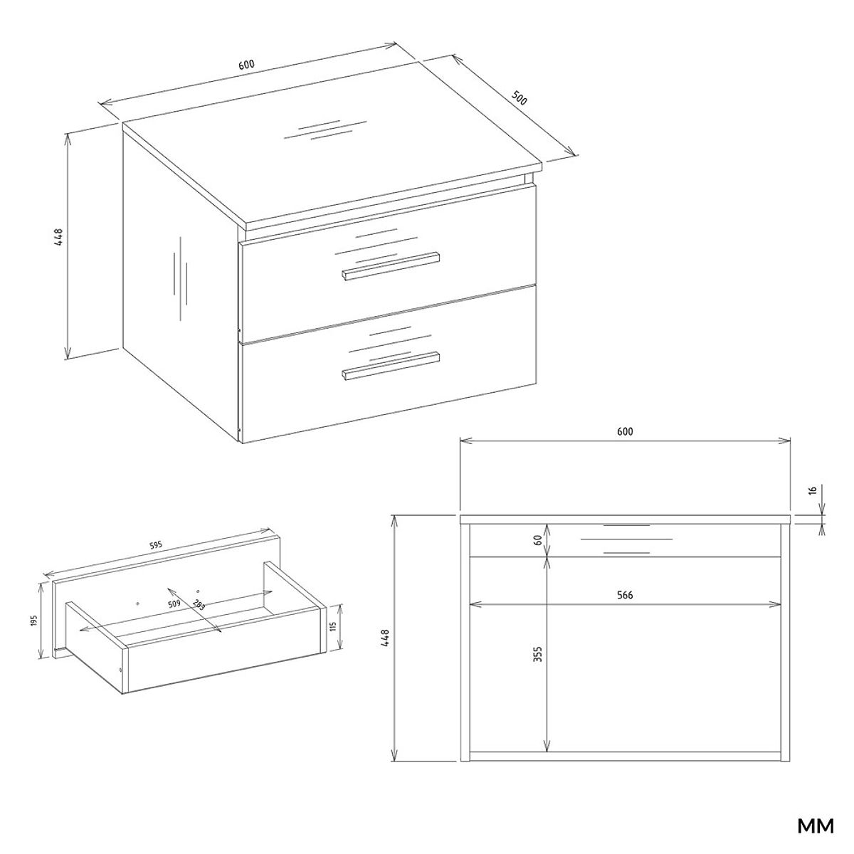 ZÁVĚSNÁ KOUPELNOVÁ SKŘÍŇKA SE 2 ZÁSUVKAMI POD UMYVADLO