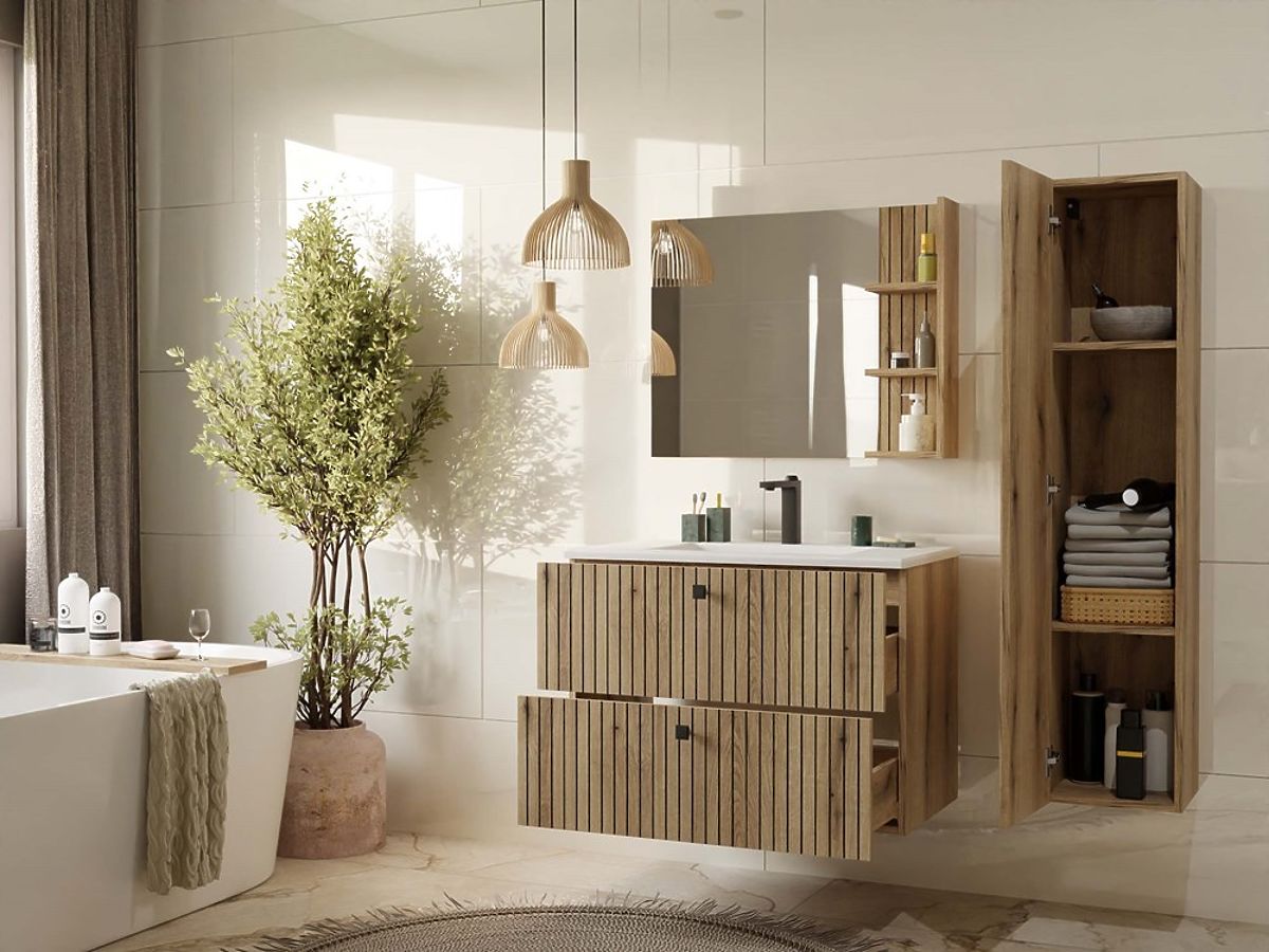 SKŘÍŇKA POD UMYVADLO TIGO 80 2S DUB EVOKE DRÁŽKOVANÝ ČELO + UMYVADLO