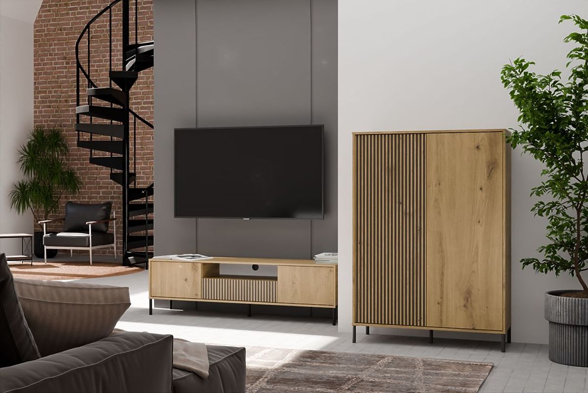 Lukafurniture.cz » Nábytek / TV stolky / RTV SKŘÍŇKA KAMARO 160 DUB ARTISAN Rýhovaný + Klasický Přední panel