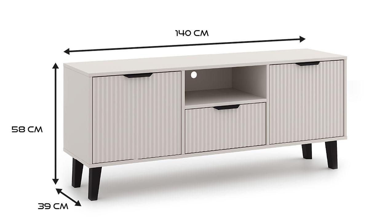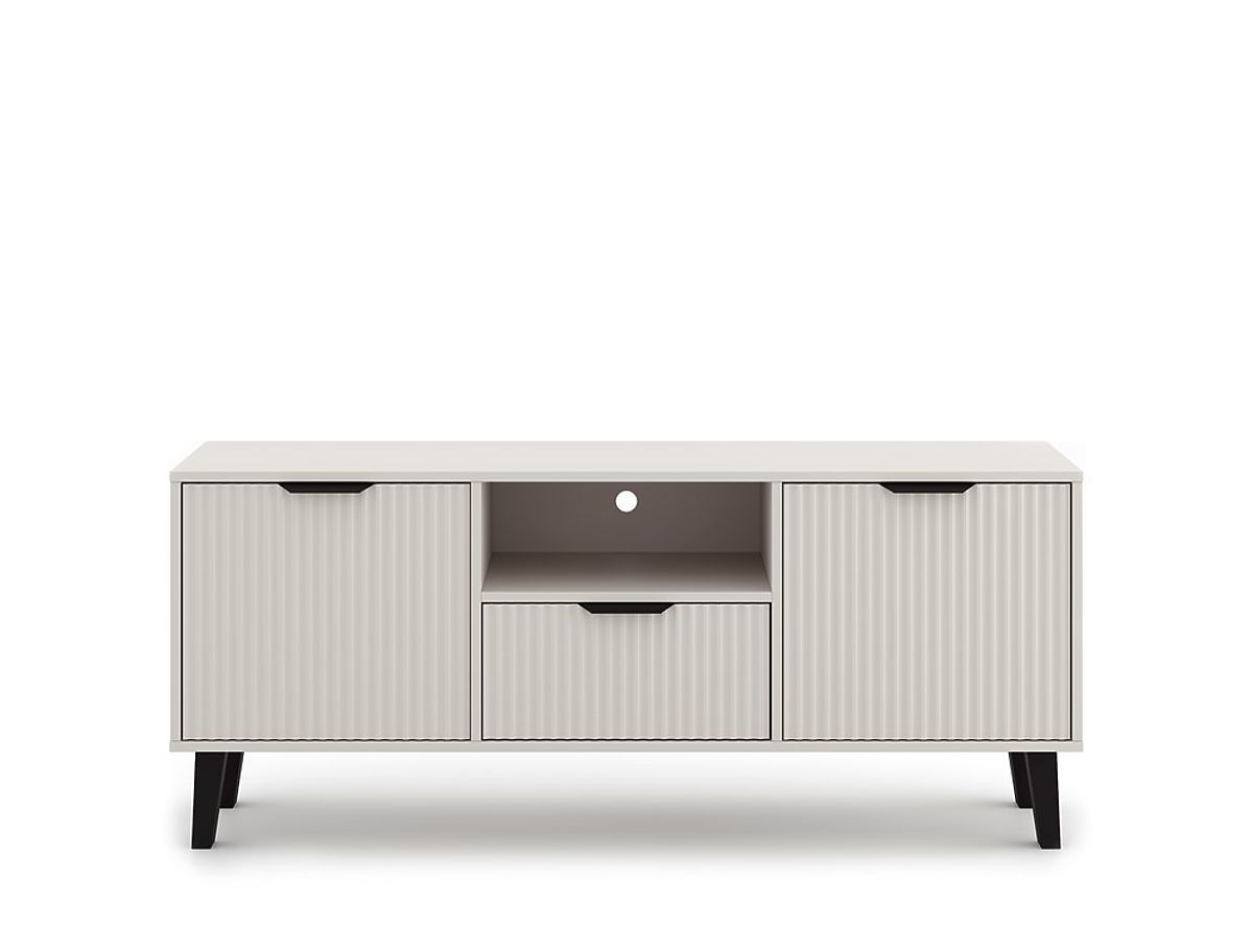 Nábytek se skvěle hodí do obývacího pokoje jako centrum domácí zábavy – pojme televizor, konzoli, dekodér nebo multimediální příslušenství. Praktický otvor v zadní stěně usnadňuje vedení kabelů a prostorný interiér – včetně dvou skříněk a zásuvky – pojme potřebné předměty, zachovávající pořádek a estetiku.