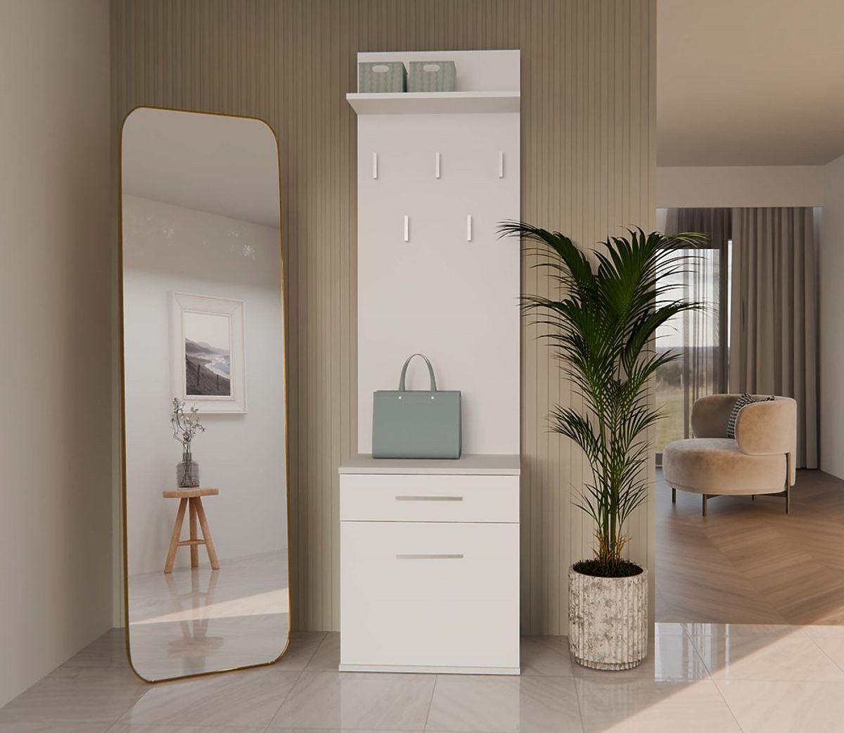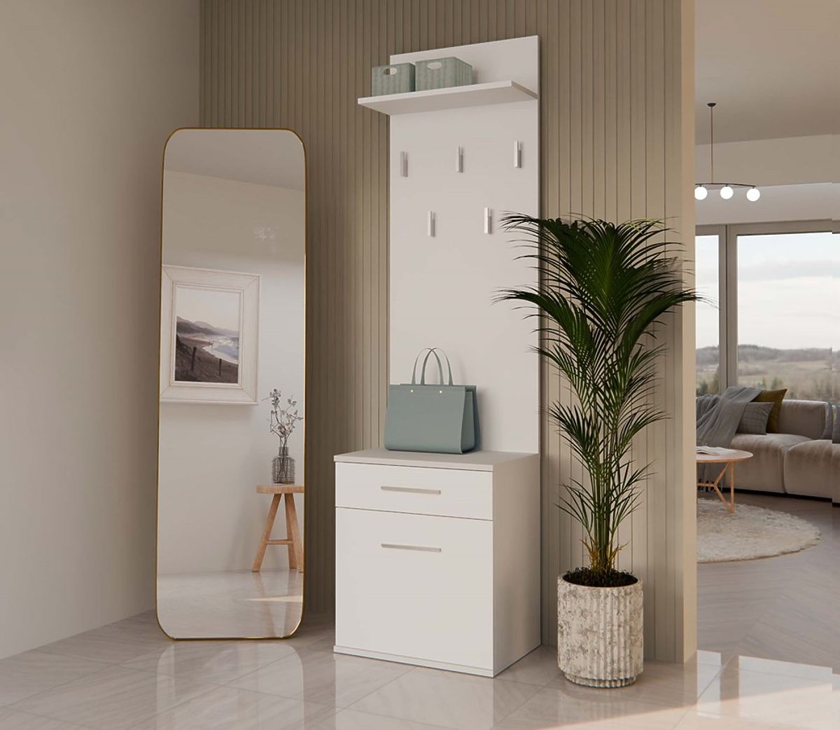 Botník a věšák Duo v matné bílé barvě s moderním designem. .. více