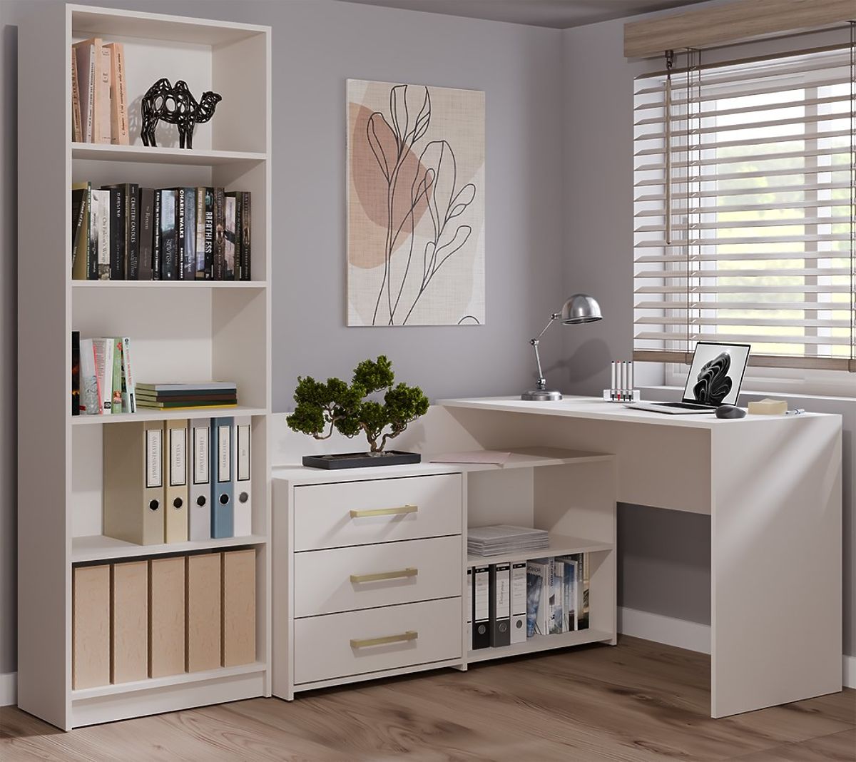 FUNKČNÍ ROHOVÝ PSACÍ STŮL SE 3 ZÁSUVKAMI