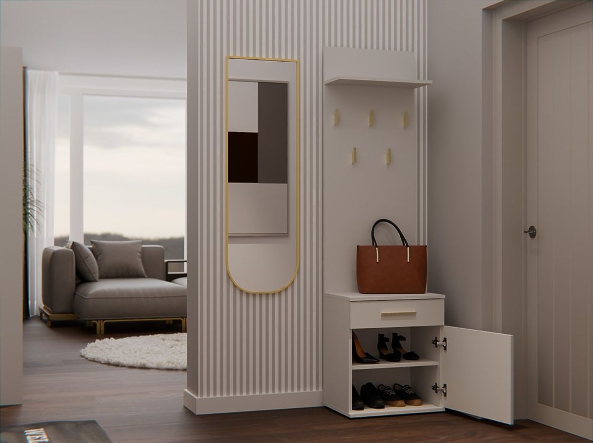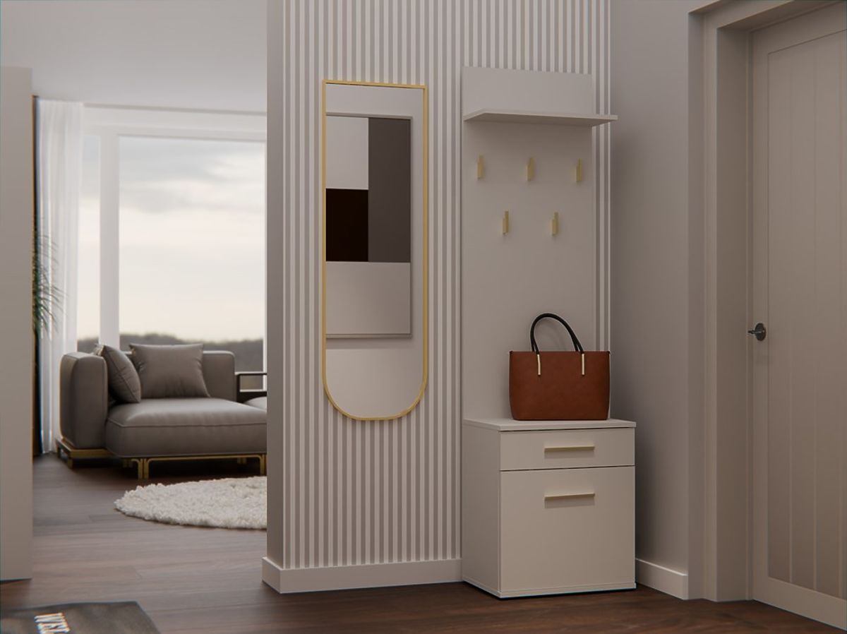Závěsný věšák s 5 háčky a poličkou na další doplňky