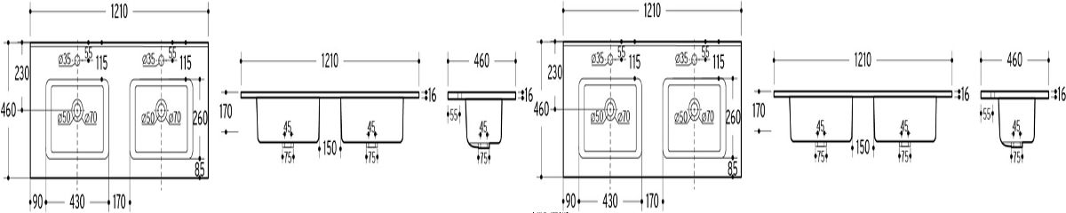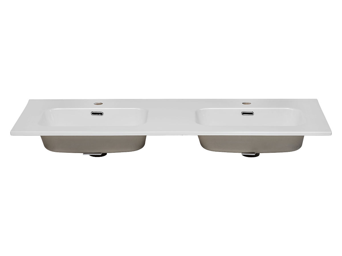 Dvoukomorové umyvadlo s vysokým leskem a obdélníkovým tvarem. .. více