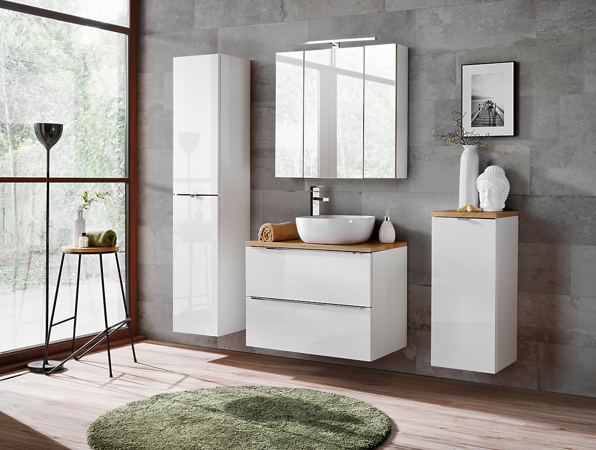 Skříňka s dvěma zásuvkami, bílý lesk, šířka 80 cm. .. více