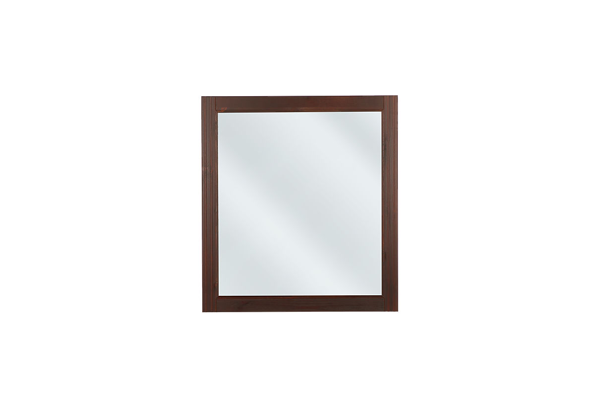 Obdélníkové zrcadlo v hnědém rámu z přírodního dřeva. .. více