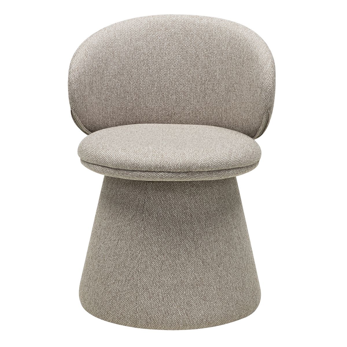 Materiál čalounění židle je béžovošedá tkanina s hydrofobními vlastnostmi, které poskytují ochranu proti rychlému prosakování tekutin. Díky tomu můžete snadno a účinně odstranit rozlitou tekutinu pomocí papírového ručníku nebo bavlněné utěrky, aniž byste se museli obávat trvalých skvrn.