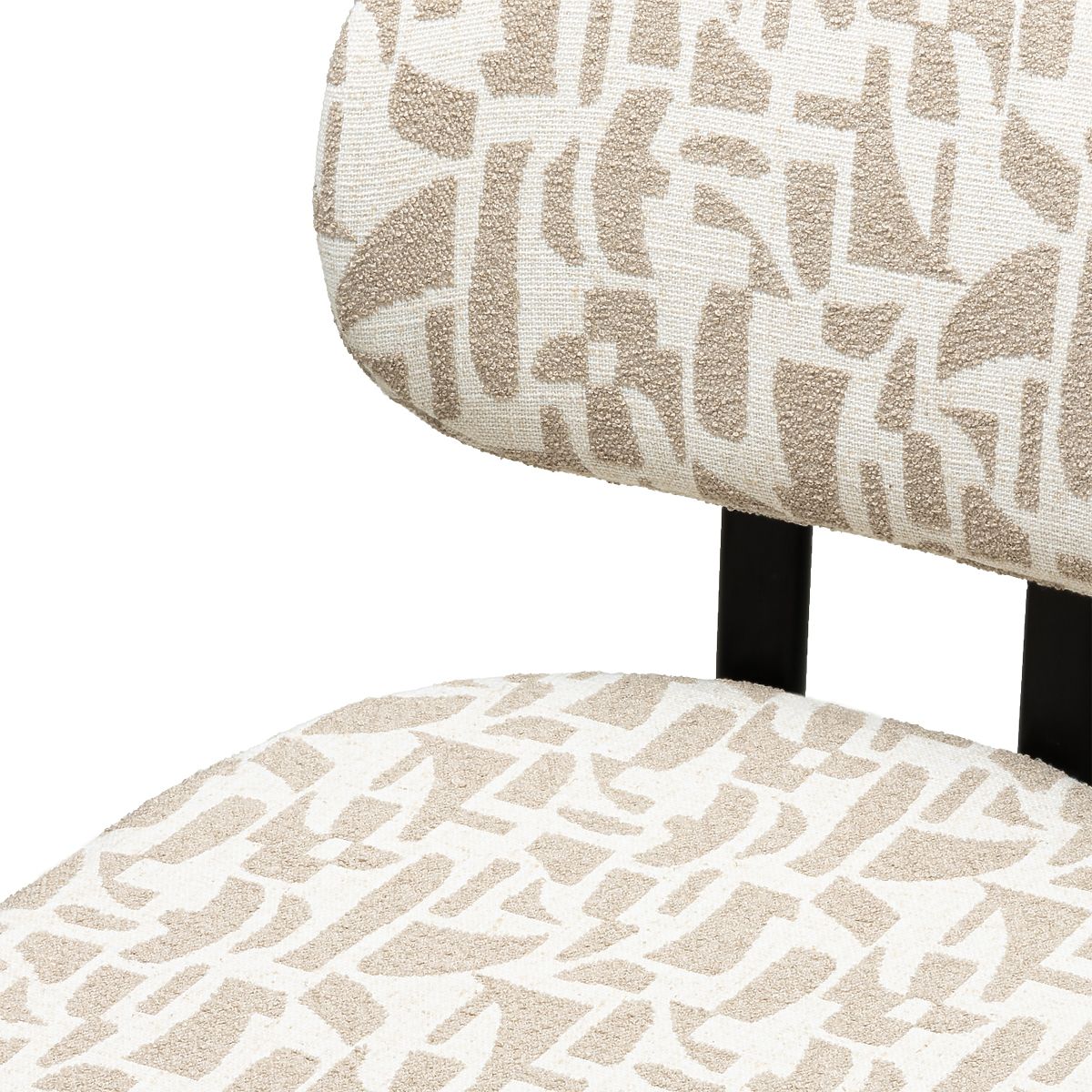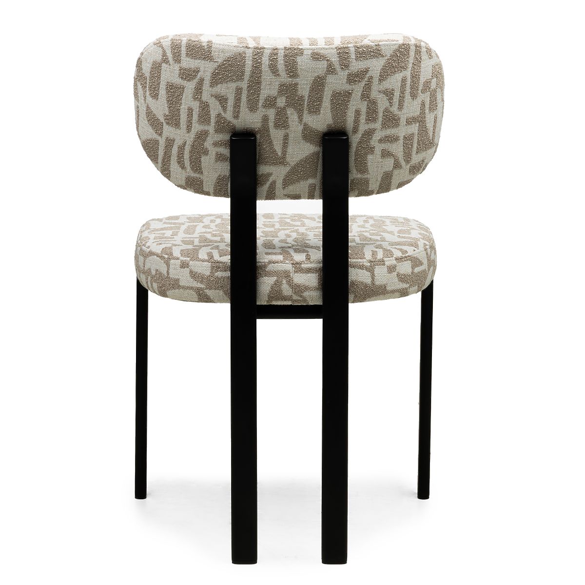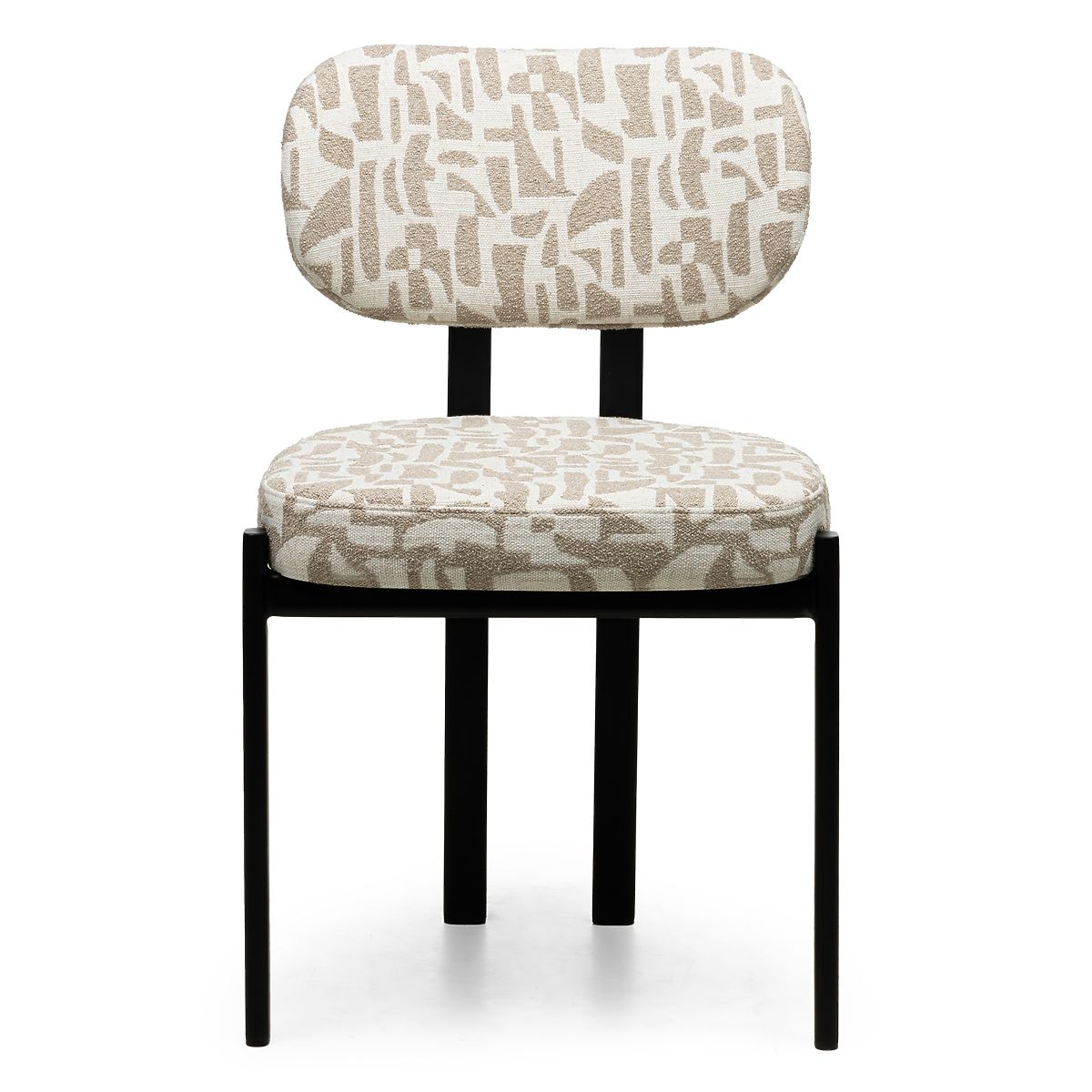 Čalouněná židle s geometrickým vzorem a černými kovovými nohami. .. více