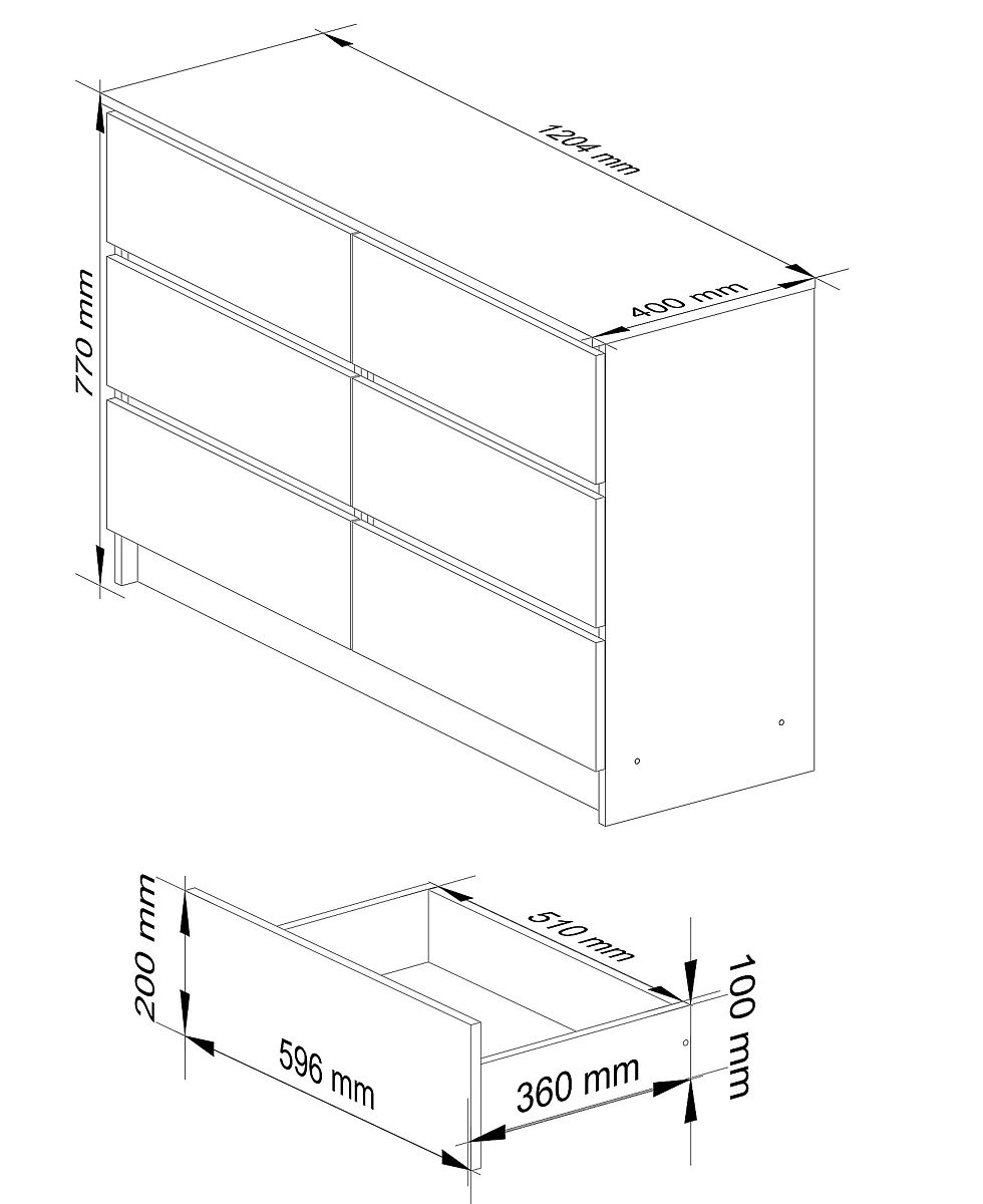 Hloubka - 40 cm- Komoda vyrobena z laminované desky odolné proti oděru