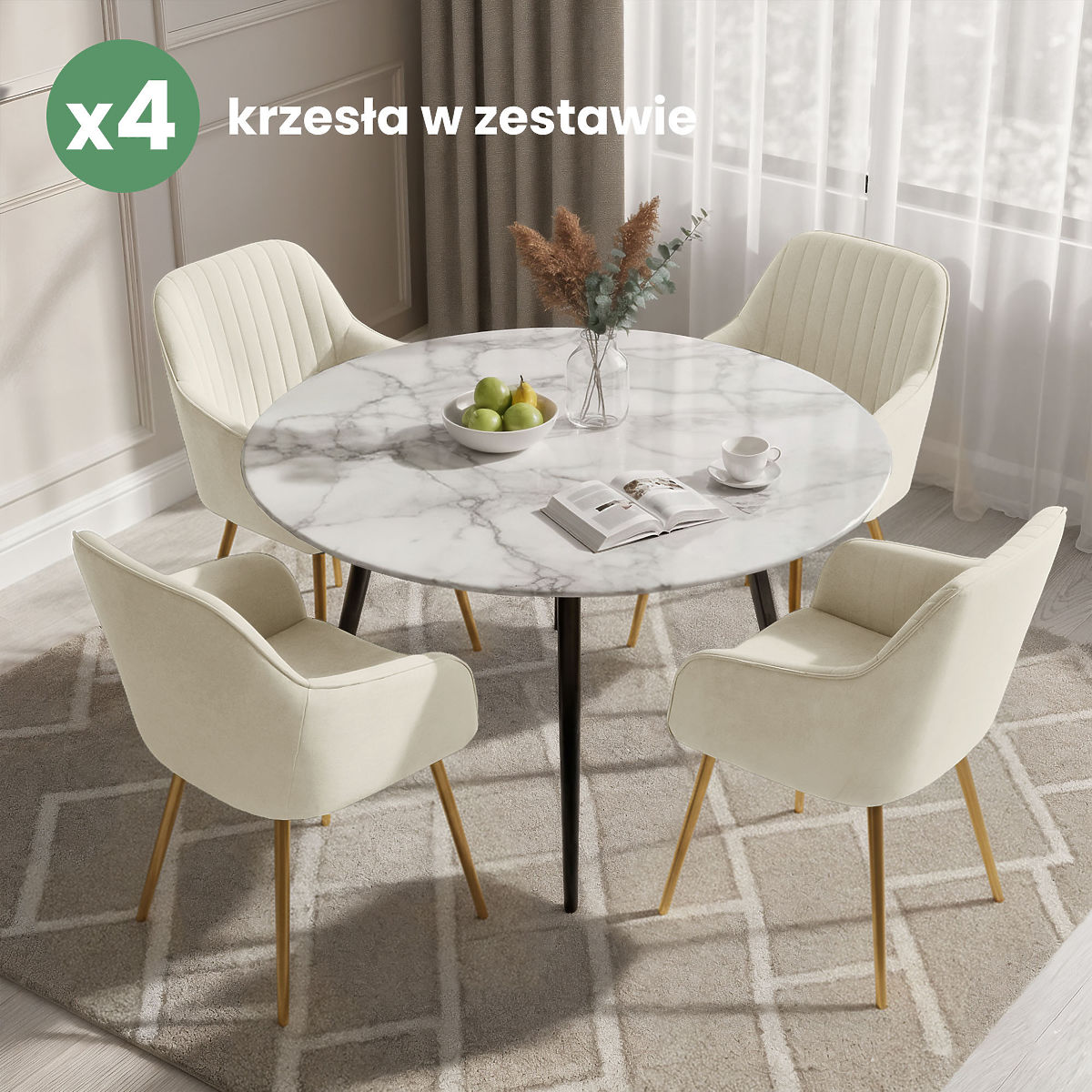 Lukafurniture.cz » Jídelna a kuchyně / Jídelní židle / 4x Sametová čalouněná židle s prošíváním Krémová FLORENCE Zlaté nohy