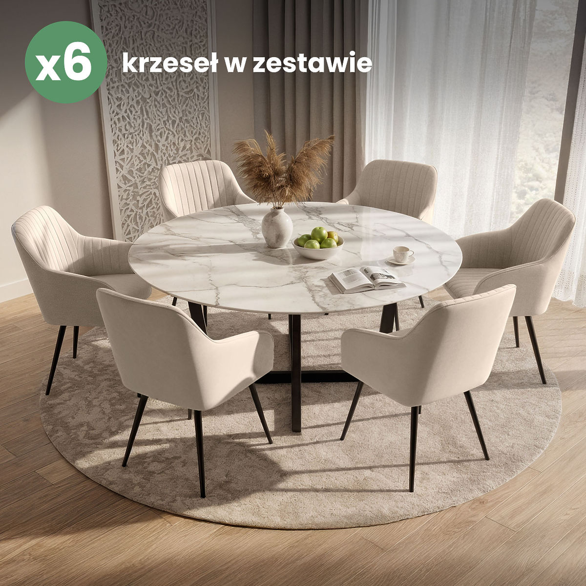 Lukafurniture.cz » Jídelna a kuchyně / Jídelní židle / 6x Sametová čalouněná židle s prošíváním Béžová FLORENCE Černé nohy