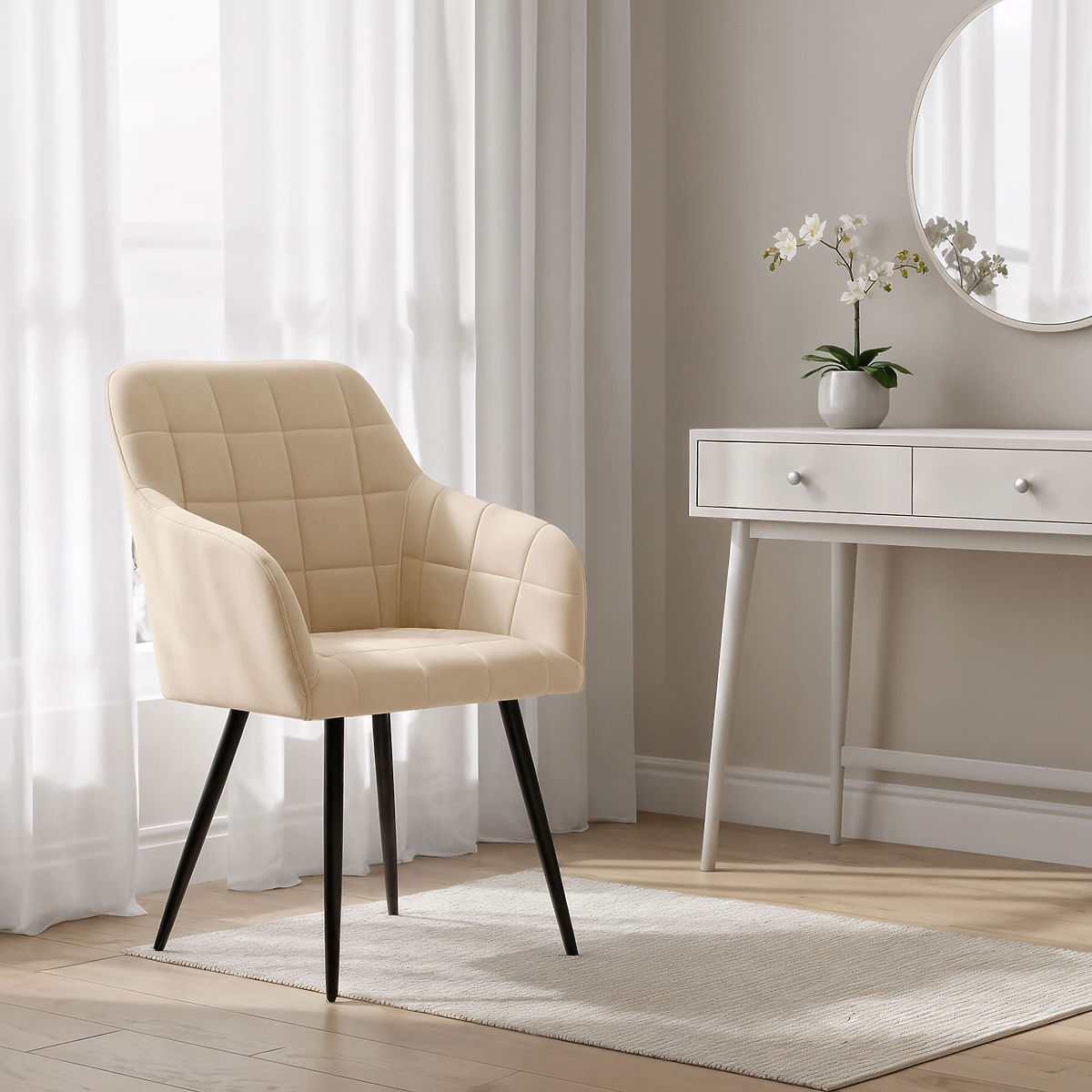 Lukafurniture.cz » Jídelna a kuchyně / Jídelní židle / 4x Čalouněná židle s čtvercovým prošíváním Béžová LUXANO Černé nohy