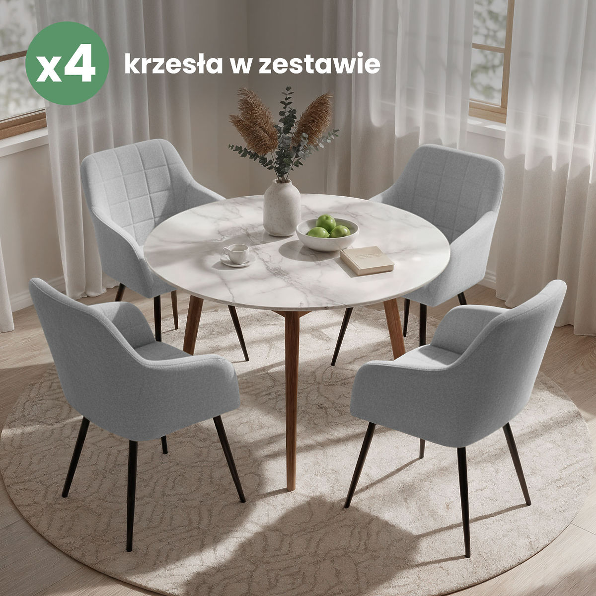Lukafurniture.cz » Jídelna a kuchyně / Jídelní židle / 4x Čalouněná židle s čtvercovým prošíváním Světle Šedá LUXANO Černé nohy látka Lumos