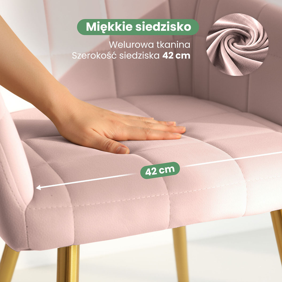 Lukafurniture.cz » Jídelna a kuchyně / Jídelní židle / 4x Čalouněná židle s čtvercovým prošíváním Pudrová Růžová LUXANO Zlaté nohy