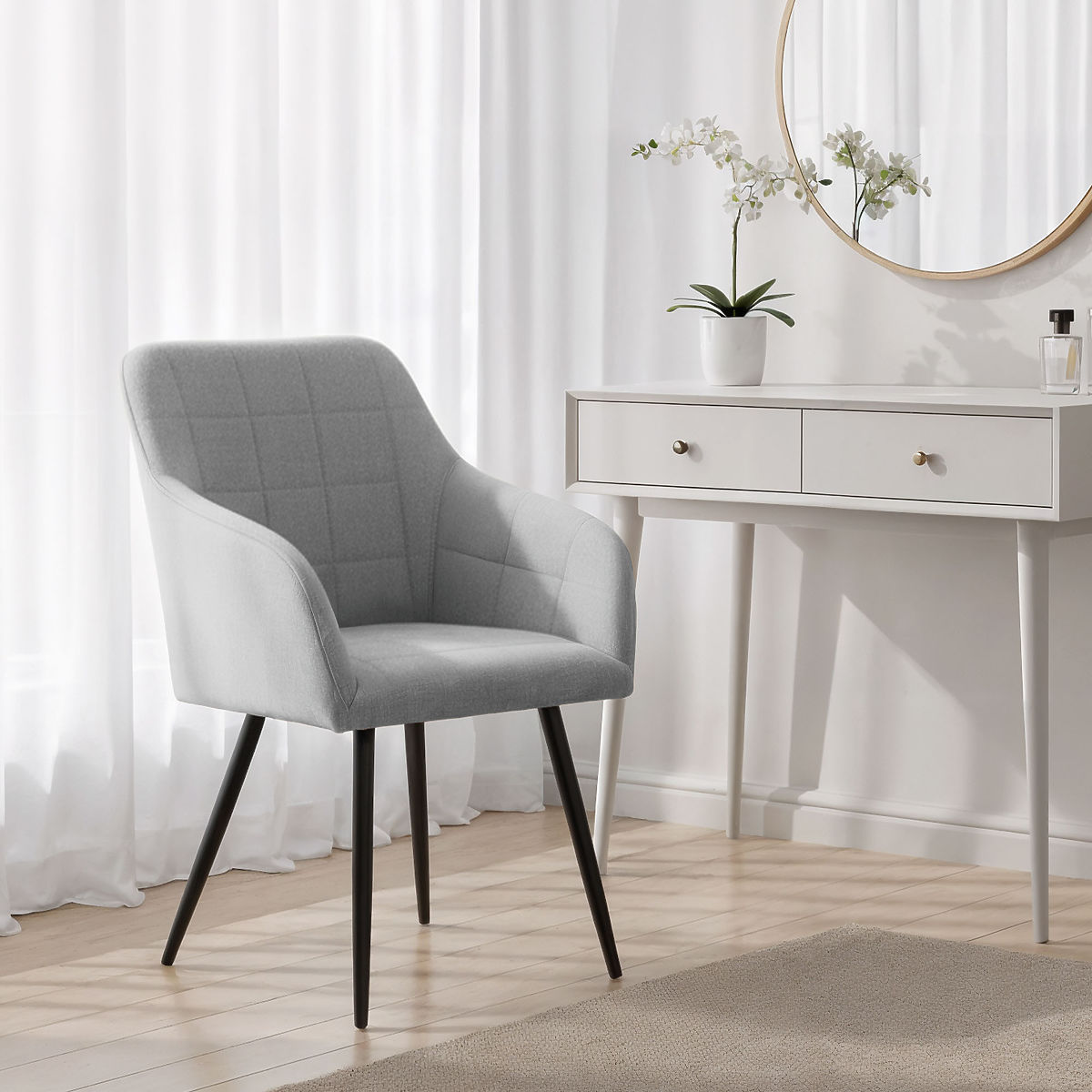 Lukafurniture.cz » Jídelna a kuchyně / Jídelní židle / 6x Čalouněná židle s čtvercovým prošíváním Světle Šedá LUXANO Černé nohy látka Lumos