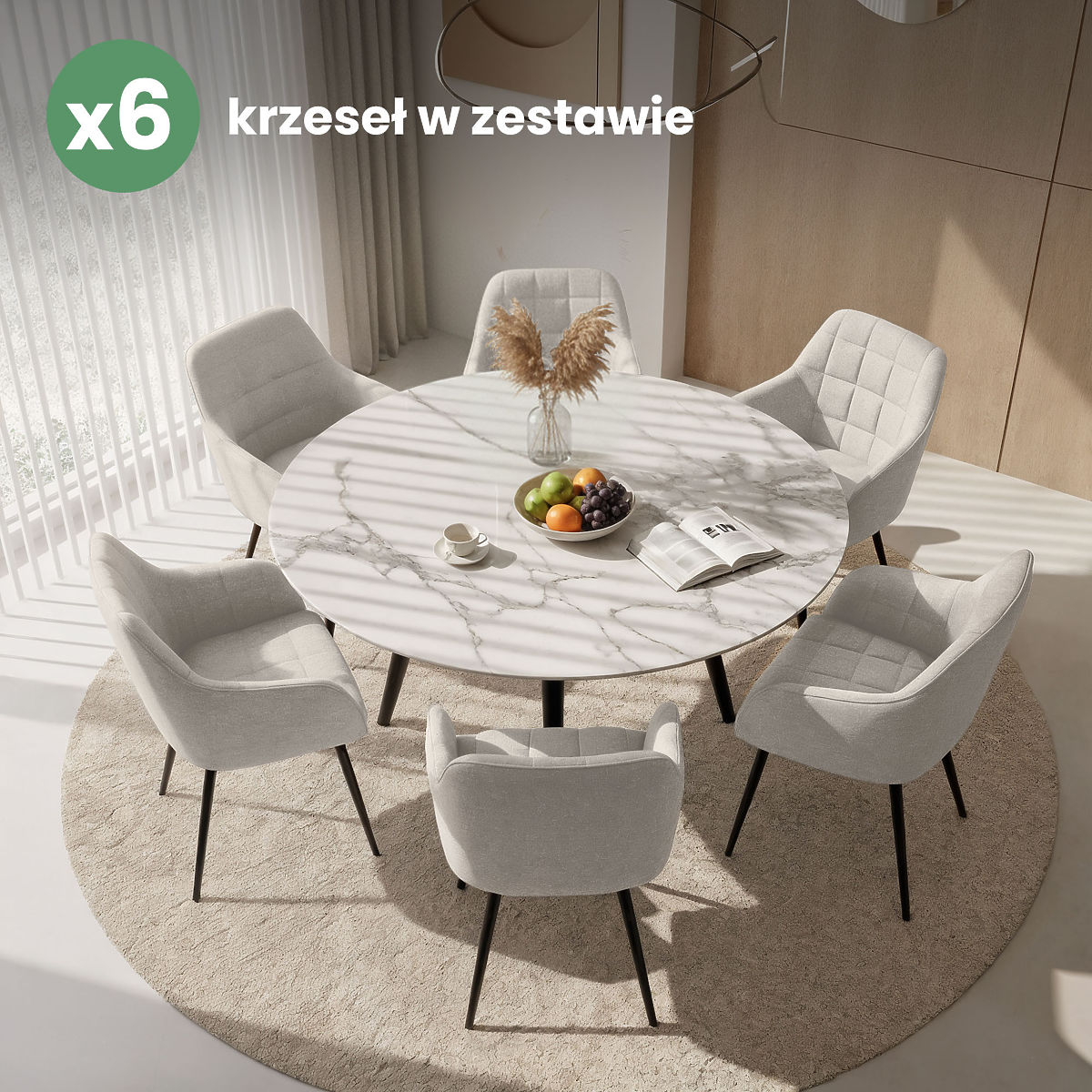 Lukafurniture.cz » Jídelna a kuchyně / Jídelní židle / 6x Čalouněná židle s čtvercovým prošíváním Krémová LUXANO Černé nohy látka Lumos