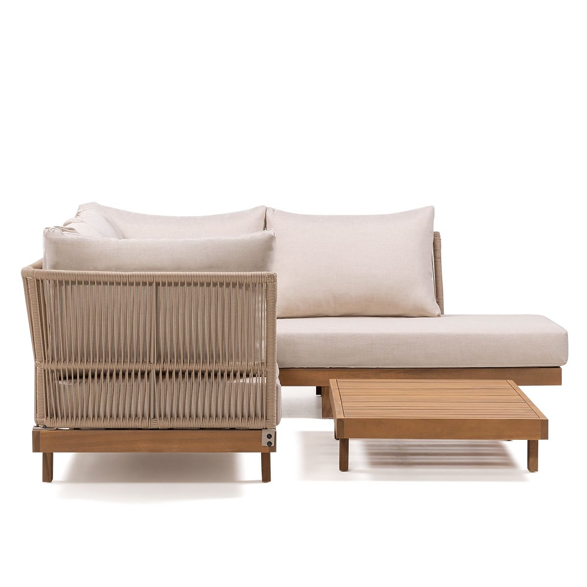 Zahradní rohová sedačka se stolkem Borgetto, pletenina, akáciové dřevo FSC, teakový vzhled, světle b
